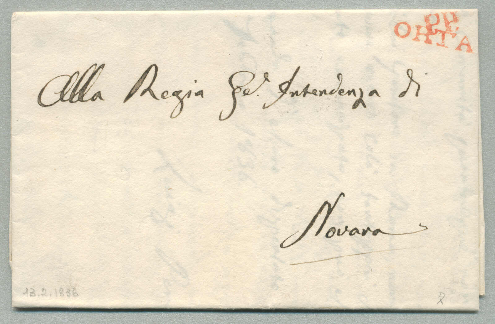 1836, mit sauberem Abschlag des Orta (San Giulio), auf Faltbrief, ex Provera, Kabinett! Schätzpreis 300 EUR.