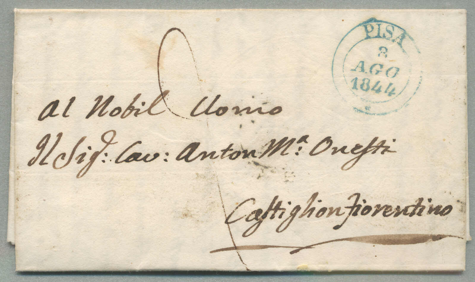 1844, mit sauberem Abschlag des Pisa, auf Faltbrief, ex Provera, Kabinett! Schätzpreis 160 EUR.