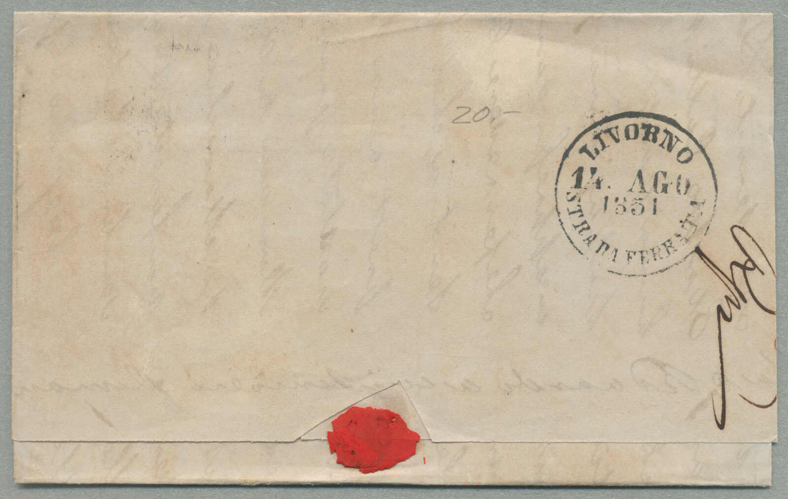 1851, mit sauberem Abschlag des Monte Catini, auf Faltbrief, ex Provera, Kabinett! Schätzpreis 100 EUR.