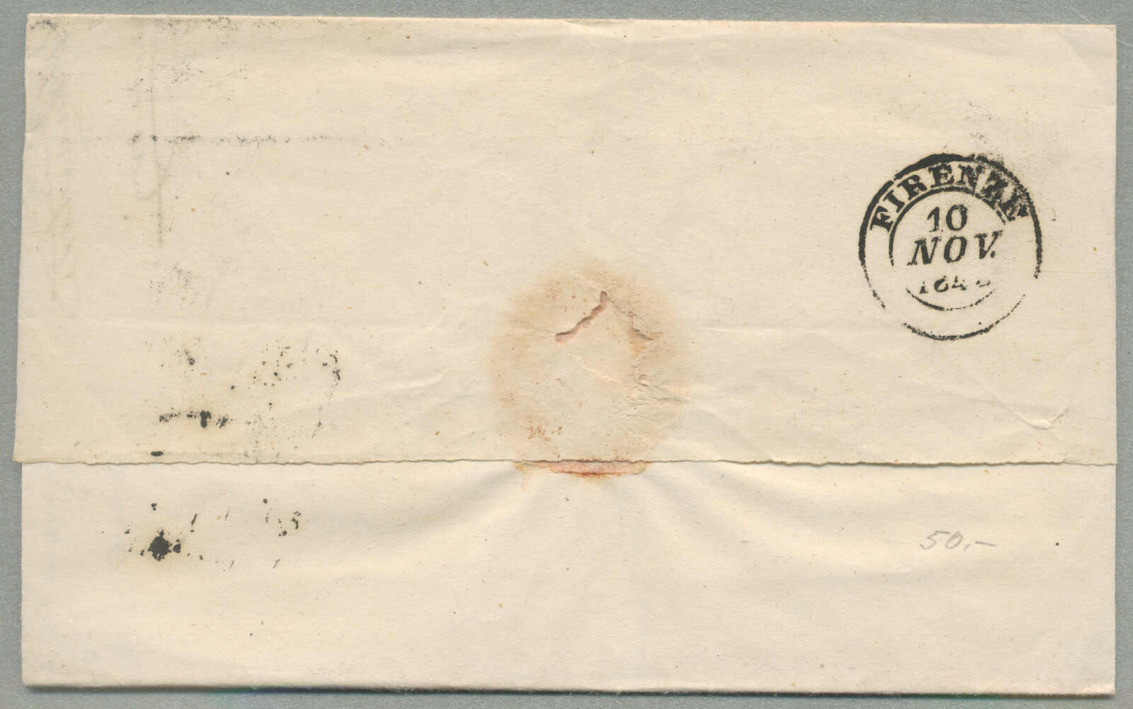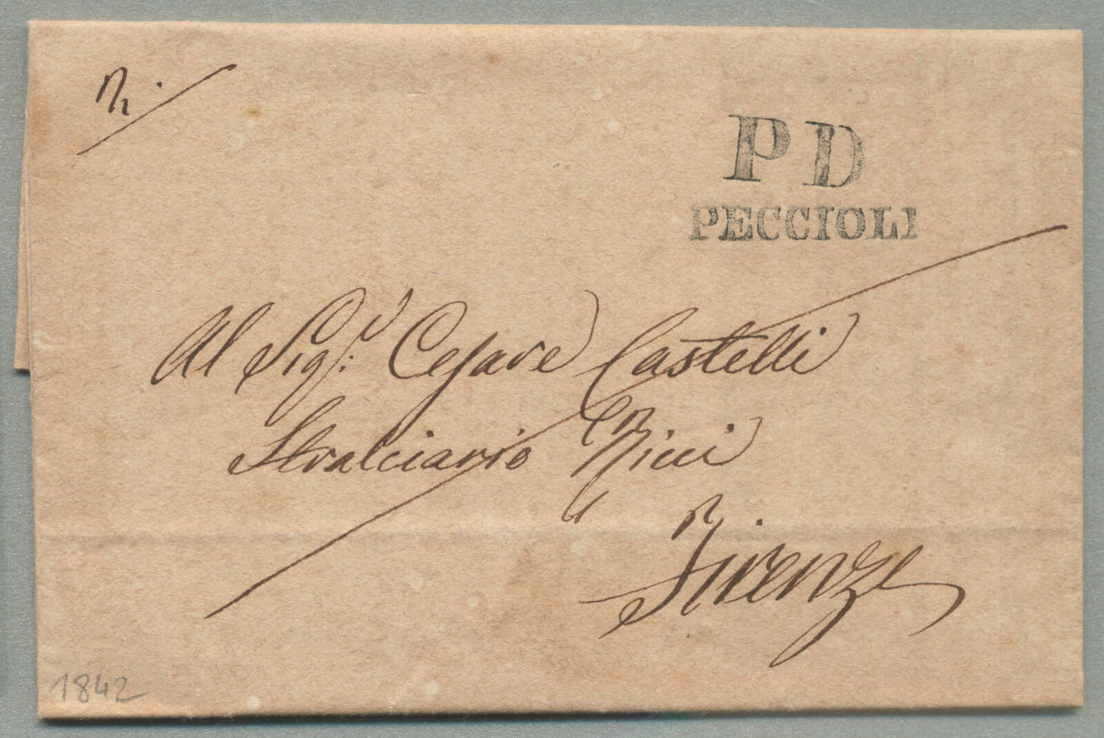 1842, mit sauberem Abschlag des PD Peccioli, auf Faltbrief, ex Provera, Kabinett! Schätzpreis 300 EUR.