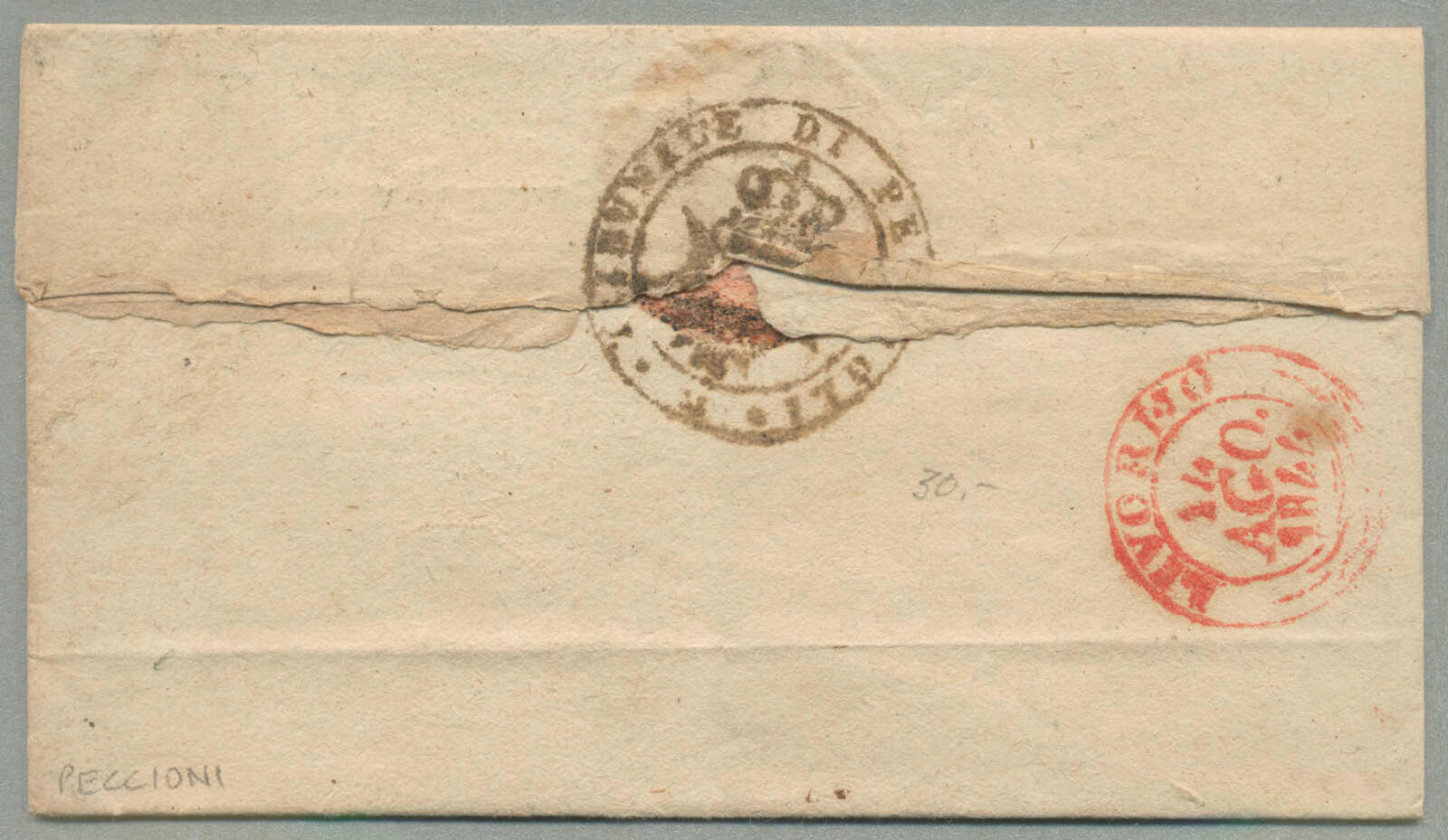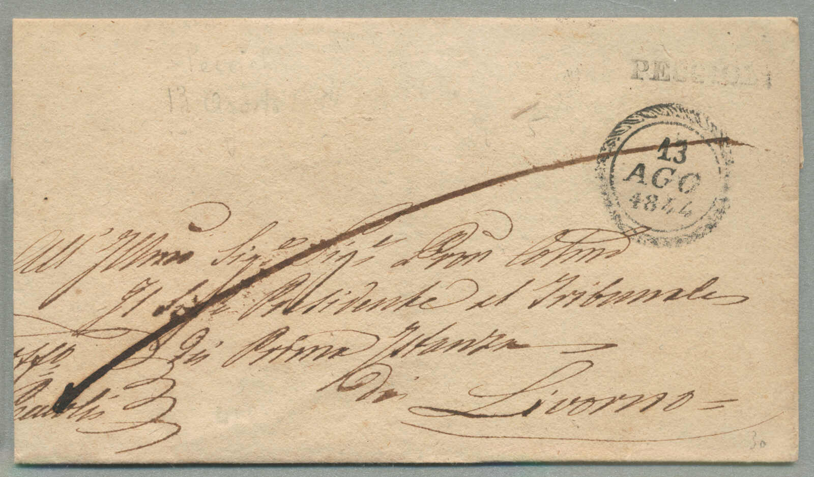 3150 on cover image1844, with neatly strike of Peccioni, on folded letter, ex Provera, XF! Estimate 120€.