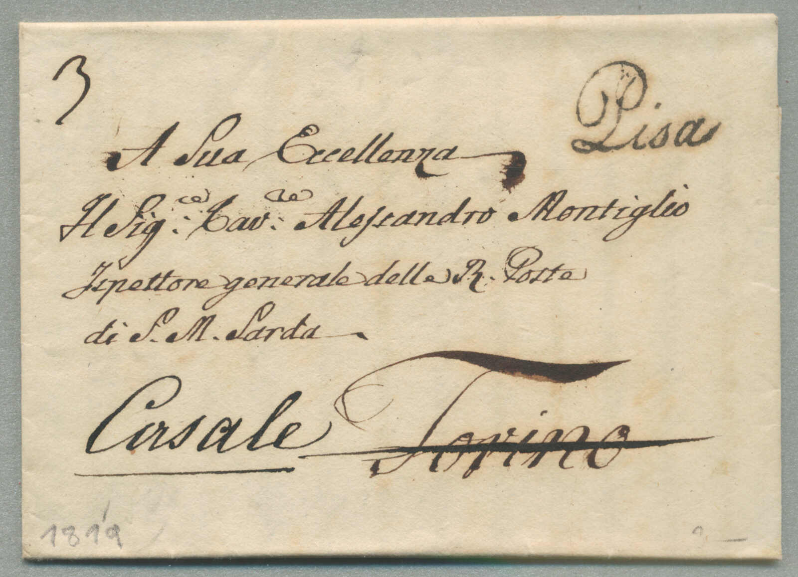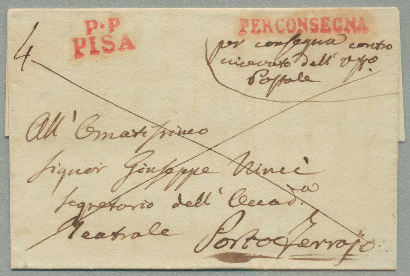 1819, mit sauberem Abschlag des Pisa, auf Faltbrief, ex Provera, Kabinett! Schätzpreis 100 EUR.