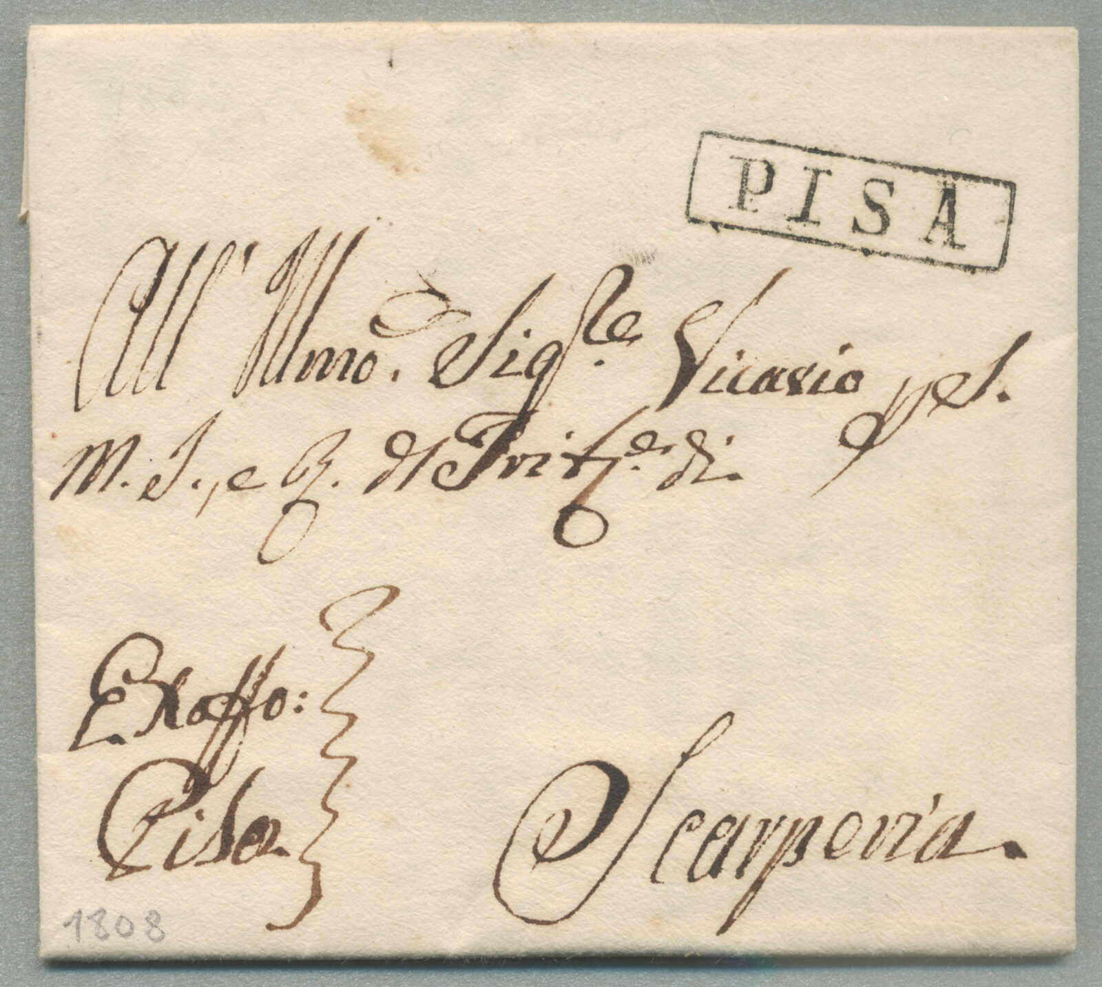1808, mit sauberem Abschlag des Pisa, auf Faltbrief, ex Provera, Kabinett! Schätzpreis 400 EUR.