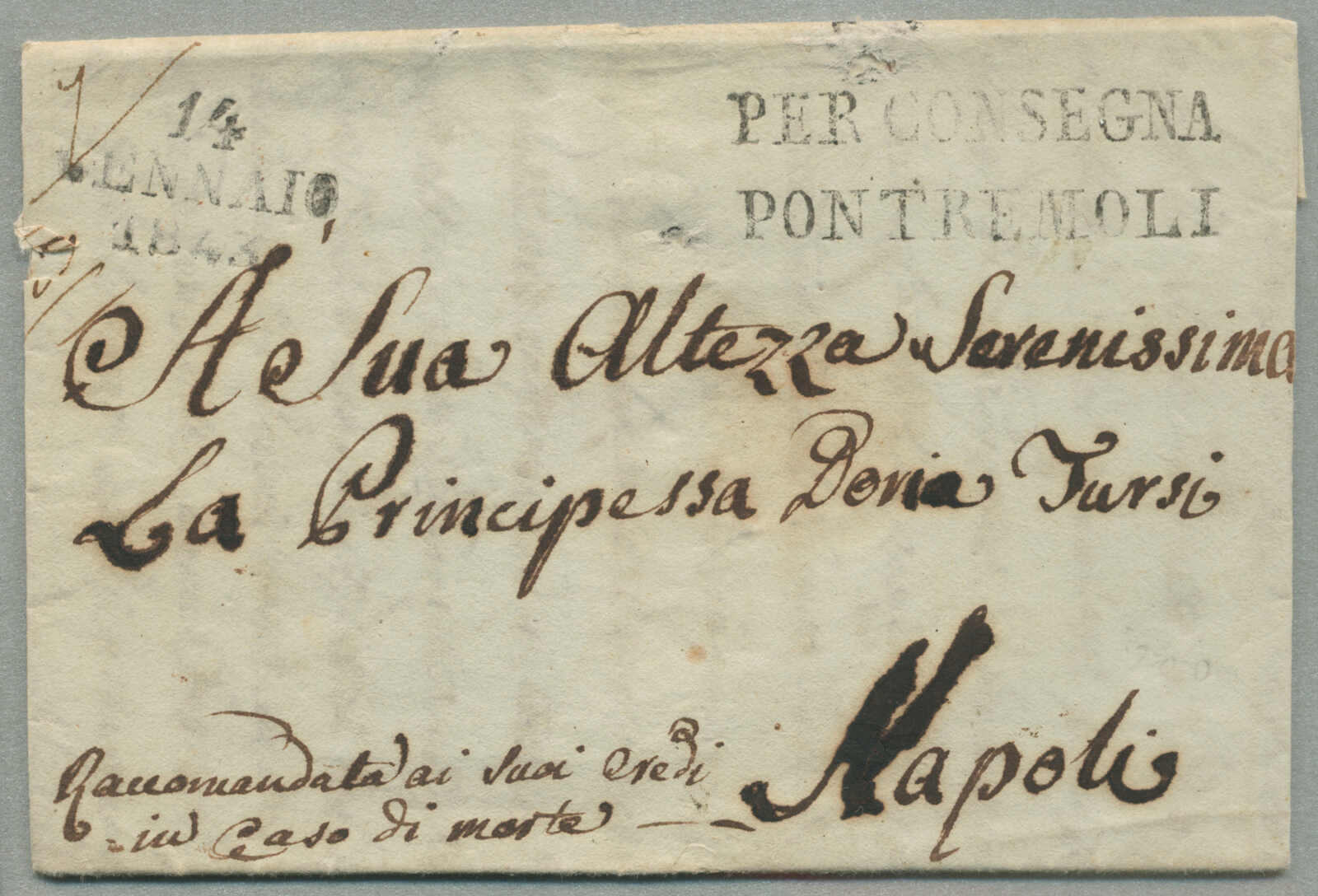 1843, mit sauberem Abschlag des Per Consegna Pontremoli, auf Faltbrief, ex Provera, Kabinett! Schätzpreis 300 EUR.