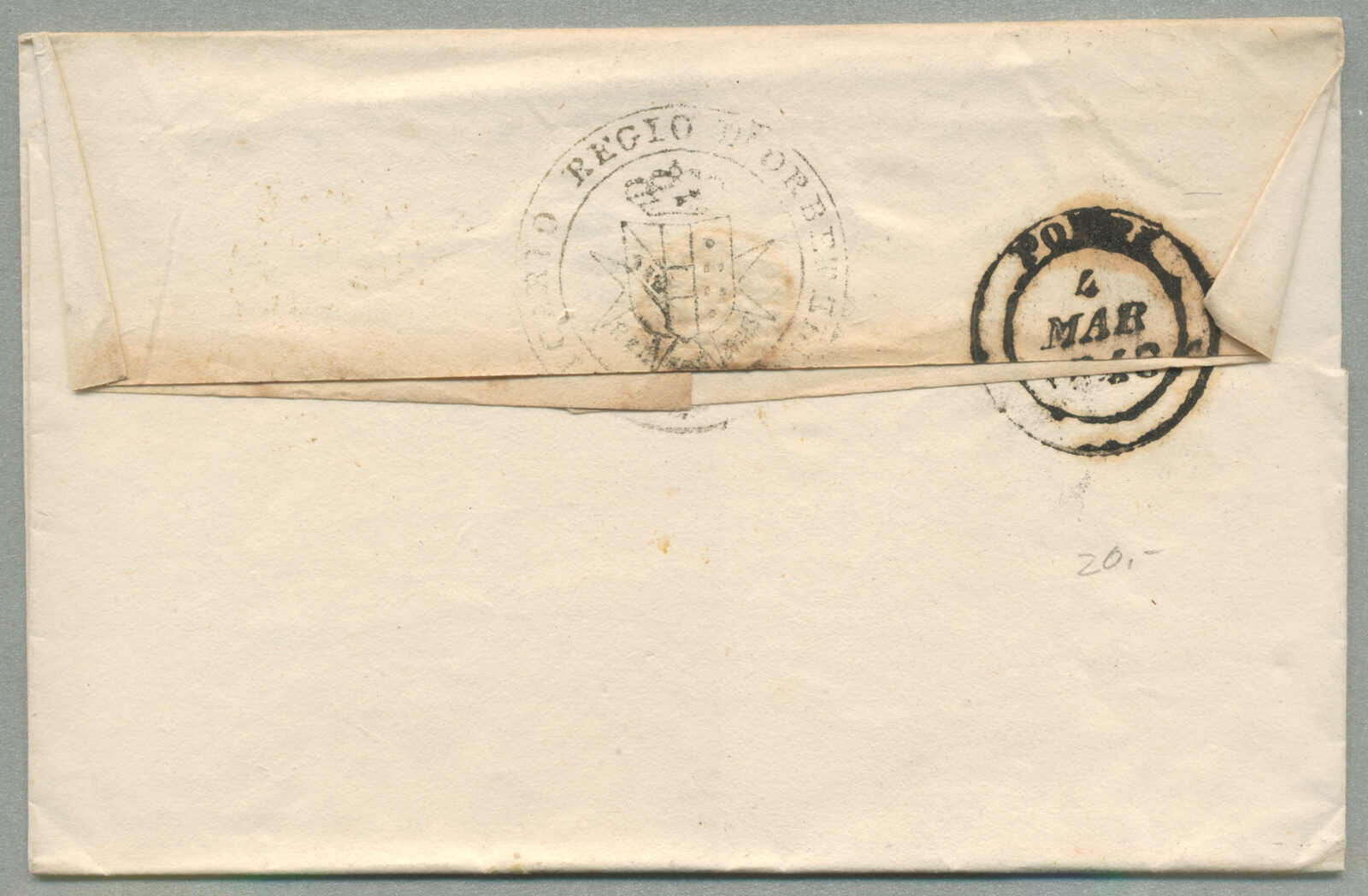 1831, mit sauberem Abschlag des Orbetello, auf Faltbrief, ex Provera, Kabinett! Schätzpreis 120 EUR.