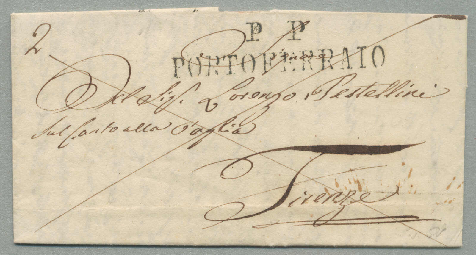 1838, mit sauberem Abschlag des Portoferraio - auf Insel von Elba, auf Faltbrief, ex Provera, Kabinett! Schätzpreis 100 EUR.