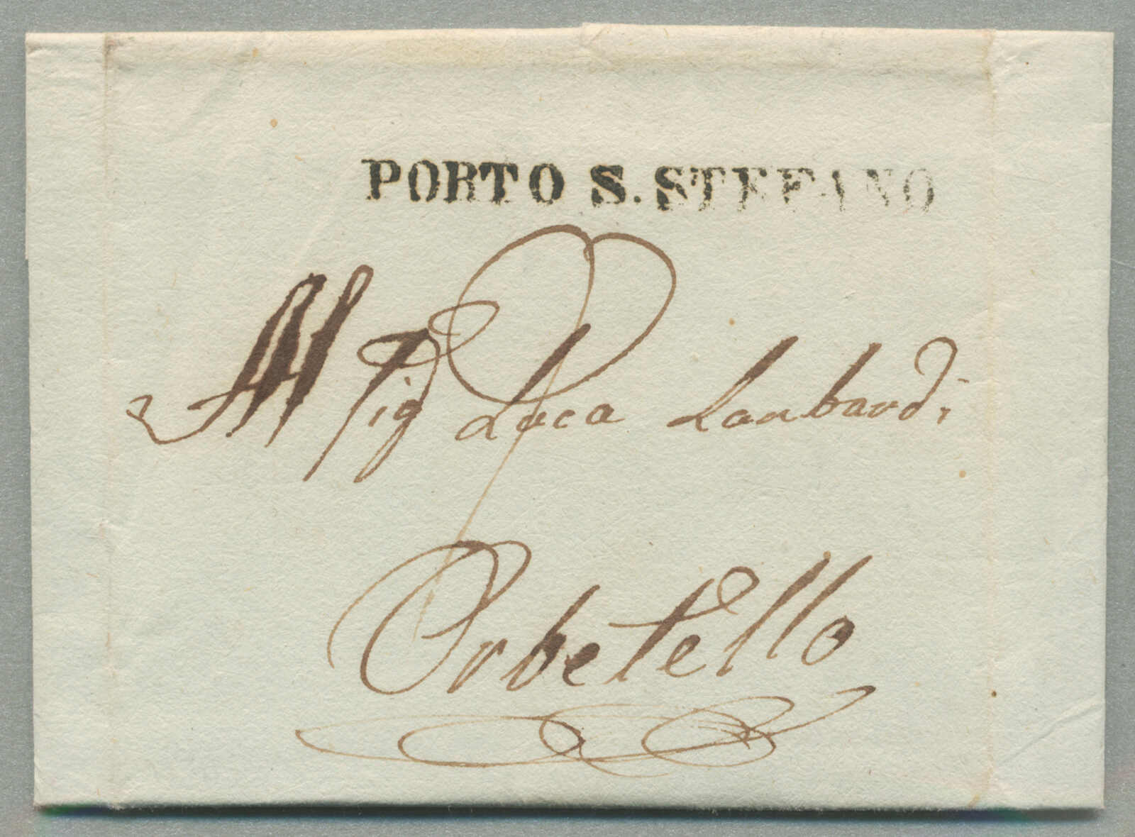 1841, mit sauberem Abschlag des Porto Santo Stefano, auf Faltbrief, ex Provera, Kabinett! Schätzpreis 300 EUR.