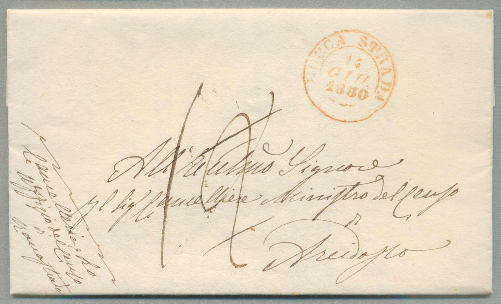 1850, mit sauberem Abschlag des rot Rocca Strada, auf Faltbrief, ex Provera, Kabinett! Schätzpreis 800 EUR.