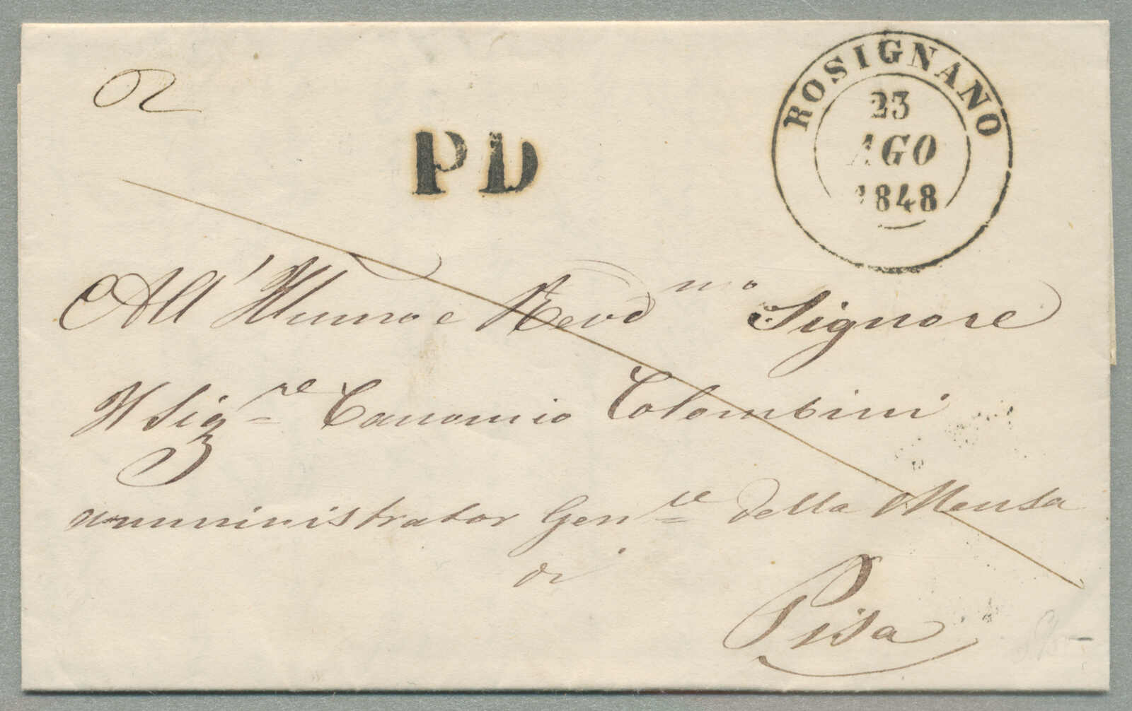 1848, mit sauberem Abschlag des Rosignano (heute Rosignano Marittimo), auf Faltbrief, ex Provera, Kabinett! Schätzpreis 120 EUR.