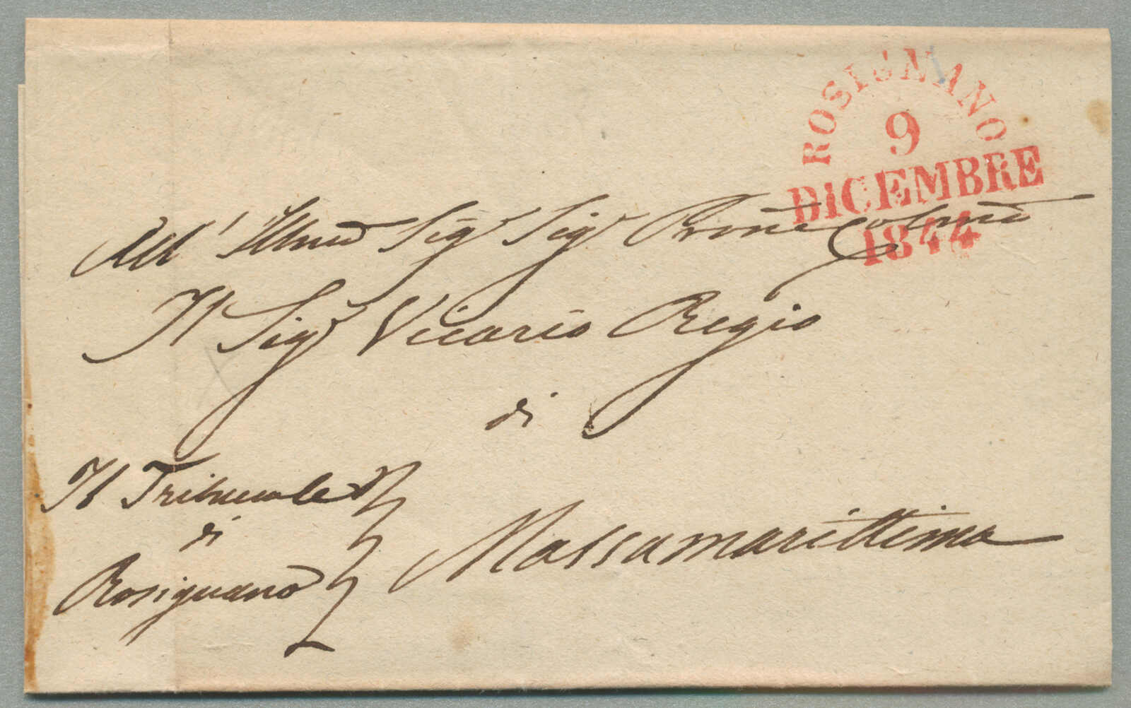 1844, mit sauberem Abschlag des Rosignano, auf Faltbrief, ex Provera, Kabinett! Schätzpreis 300 EUR.