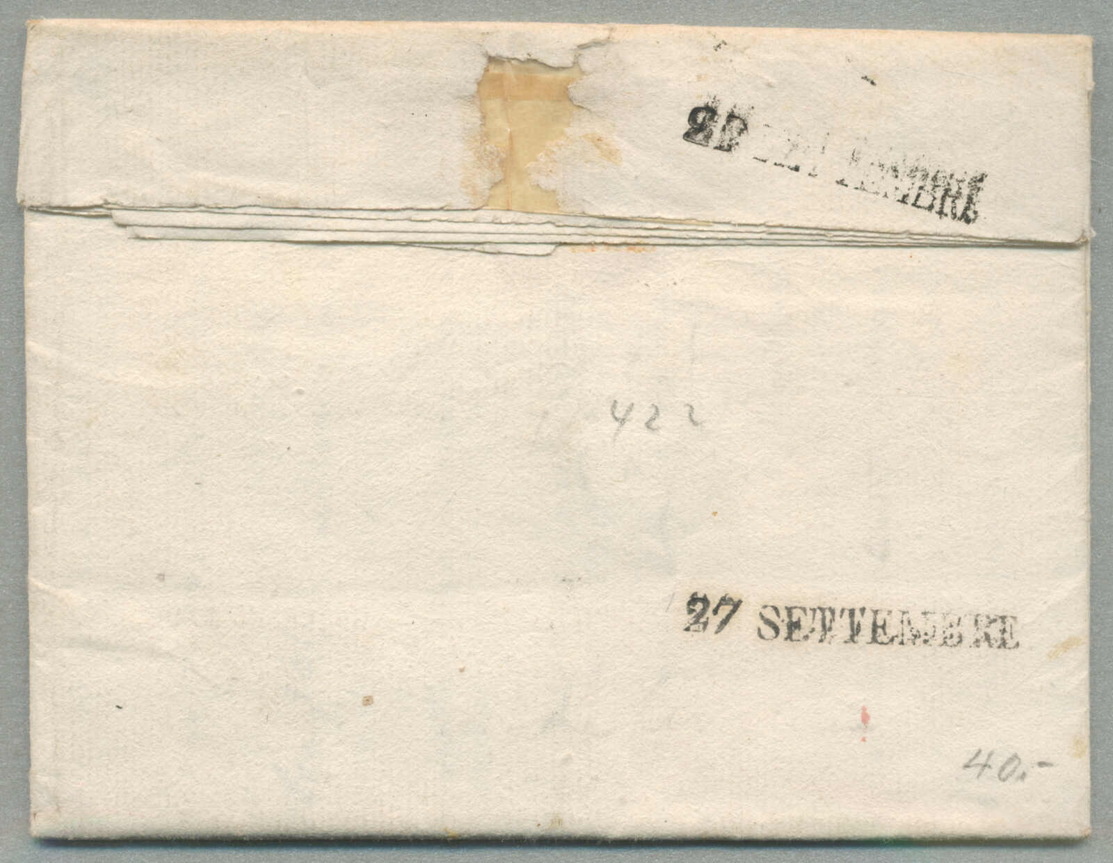 1842, mit sauberem Abschlag des Rosigniano, auf Faltbrief, ex Provera, Kabinett! Schätzpreis 120 EUR.