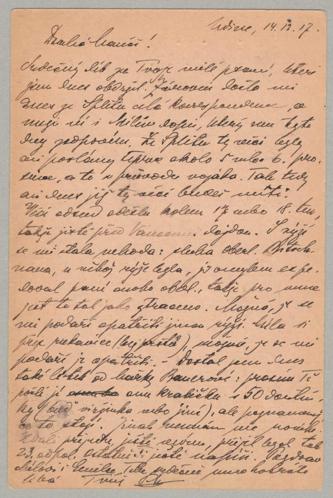 1917, ab k. u. K. Etappenpostamt 499 zu Brünn, österreichische Militär Feldpostkarte gesendet bei Hauptmann Rechnungsprüfer Dr. Josef Ruzicka, Gericht des k. u. K. Etappenkommandos in Udine, adressiert nach Maria Riegrova, handgeschrieben Adresse und Botschaft, schwarz Rundstempel K. U. K. ETAPPENPOSTAMT 499 datiert 14. X. 17, violetter Handstempel K. U. K. ETAPPENGERICHT Udine teilweise sichtbarer auf Karte, Verwendung ab rear-area Militärverwaltung während der Austro-Hungarian Besetzung von Norditalien nachstehend das 12. Schlacht des Isonzo und die voraus hinein italienisch Gebiet, geschichtlich Gewicht als Teil vom Militär Rechtssystem Operationen hinter das Frontverläufe, ex Kugel, Kabinett! Schätzpreis 400 EUR.