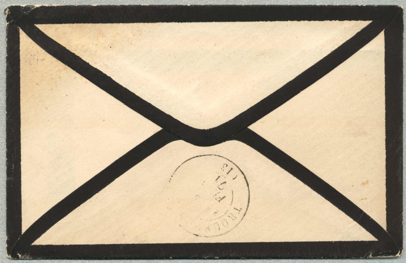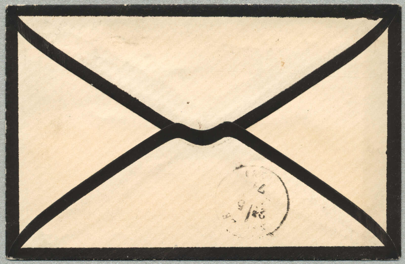 2266 on cover image1871, From Bordeaux to Trouville sur Mer, mourning envelope franked with 1x 15 c bistre Ceres imperforate issue, cancelled with lozenge dot cancel with central numeral 532, circular date stamp BORDEAUX 21 AVRIL 71 alongside, arrival backstamp TROUVILLE 23 FEVR 71, clear to good margins, typical use of 15 c rate during early Third Republic, Franco-Prussian War aftermath, letter content missing, VF! Estimate 200€.