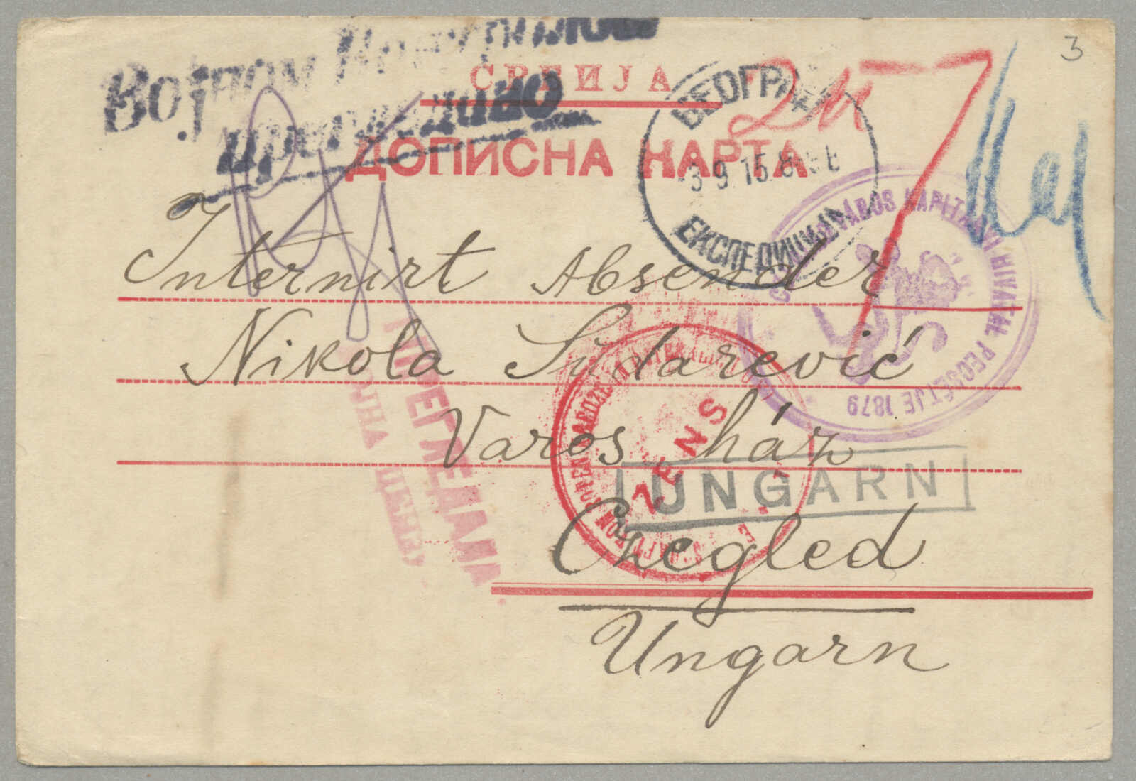 1915, markenlos Militärpostkarten, übergehend gestempelt mit kreisförmig Aufgabestempel von BEOGRAD zu CZEGLED, Ungarn, BEOGRAD Stempel datiert 3 9 15, zusätzlich ZENSUR Vermerk in rot kreisförmig Entwertung, UNGARN Rechteckhandstempel und CZEGLED Stadt Militär und Verwaltungsbehörde violett oval Entwertung CZEGLED VAROS KAPITANYI HIVATAL PECSETJE 1879, Abgefertigt während der 1915 Zentralmächte Feldzug gegen Serbien, aufgegeben von das besetzte serbische Hauptstadt BEOGRAD nachstehend seines kriegswichtig Einbringung bei Austro-ungarischen und deutsche Streitkräfte in spätsommerlicher 1915, dieses Stadt diente danach als eine große Militär hub und administrativer Mittelstück unter gemeinsamem Zentralmächte Kontrolle, das ZENSUR Vermerk angebracht bei Austro-ungarischen Feld Zensoren abspiegelnd verstärkte Kontrolle von Korrespondenz während Ereignis Balkans Militäroperationen, Kasten UNGARN Handstempel hinweisend Sortierung und Transit über das internen Militär Postwesen des ungarischen Teil der zweifache Monarchie, CZEGLED Ankunft bestätigt bei Vollstempel des selten gesehen violett oval Städtischen Militärsiegel CZEGLED VAROS KAPITANYI HIVATAL PECSETJE 1879, Bedeutung Siegel des Städtischen Büro der Stadt Commandant von Czegled, das Datum 1879 bezüglich das förmlich Etablissement von dieser Instanz innerhalb Hungarys internen military-administrativer Gefüge, derartiger Verwendung Höhepunkte das internen role von Regional- ungarischen Garnisonsstädten wie Czegled in Weiterverarbeitung zensiert Kriegszeit Briefpost, besonders unter erhöht internen Sicherheit Maße nachstehend das serbische Feldzug, großartig bewahrte vom Menschen geschaffenes Objekt von Militärpostgeschichte Anschluss das front-line Besatzungsgebiete mit dem logistisch und bürokratisch Herzen des Austro-ungarischen Kriegsmaschine, selten komplett Kombination von Serbian-origin Zensur, internen ungarischen Leitweg, und administrativer Bestätigungsvermerke, ausgezeichnetes Stück von beiden philatelistisch und geschichtlicher Wichtigkeit betreffend 1. Weltkrieg Militär Herrschaft und Feld Kommunikation unter Besetzung, ex Kugel, Kabinett! Schätzpreis 300 EUR.