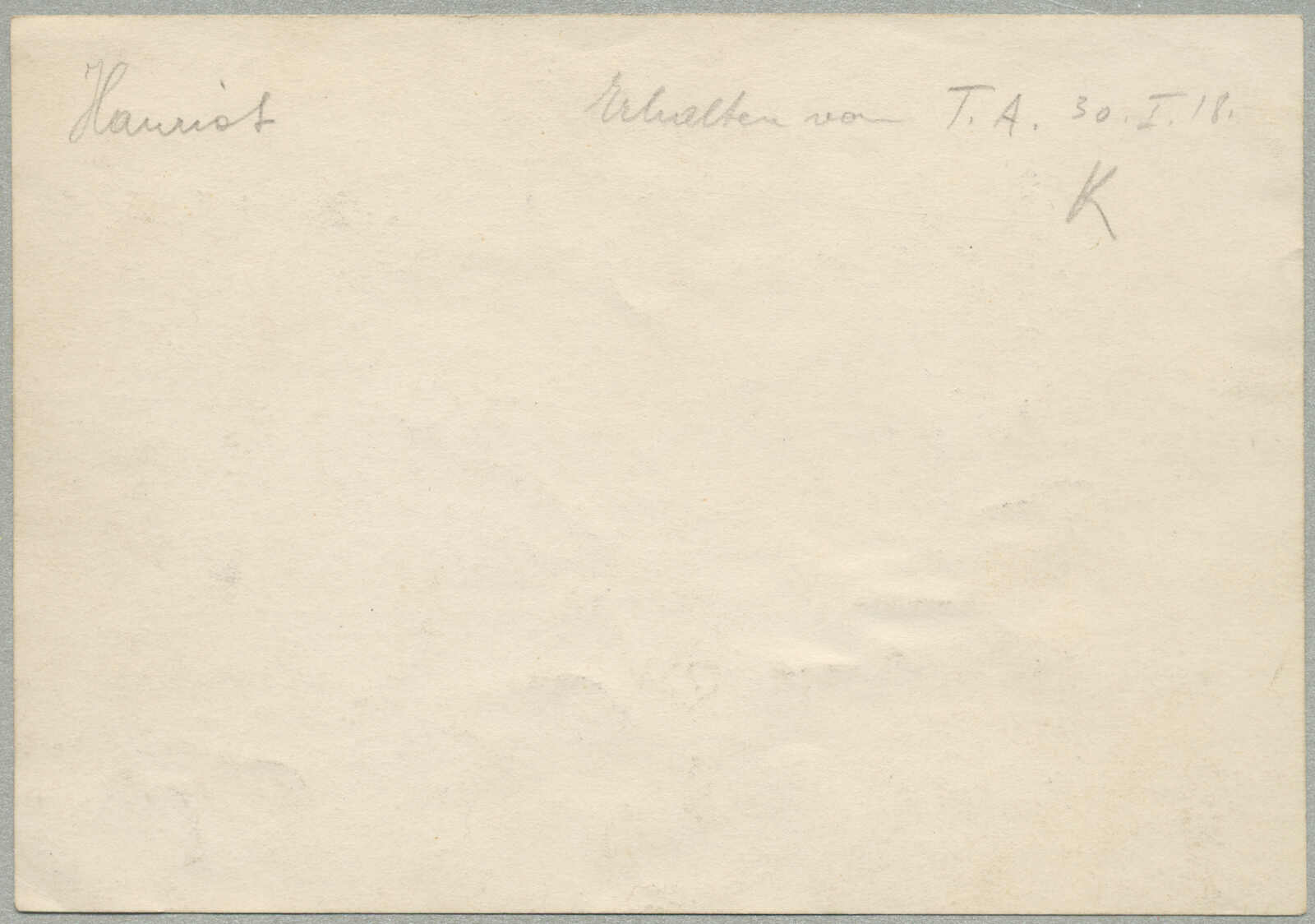 1918, Airmail photo, obtained from TA on 30 January 1918, depicting a damaged Austrian fighter aircraft, pencil notation on back, rare historical aviation-related item from the First World War, fresh and desirable, VF-XF! Estimate