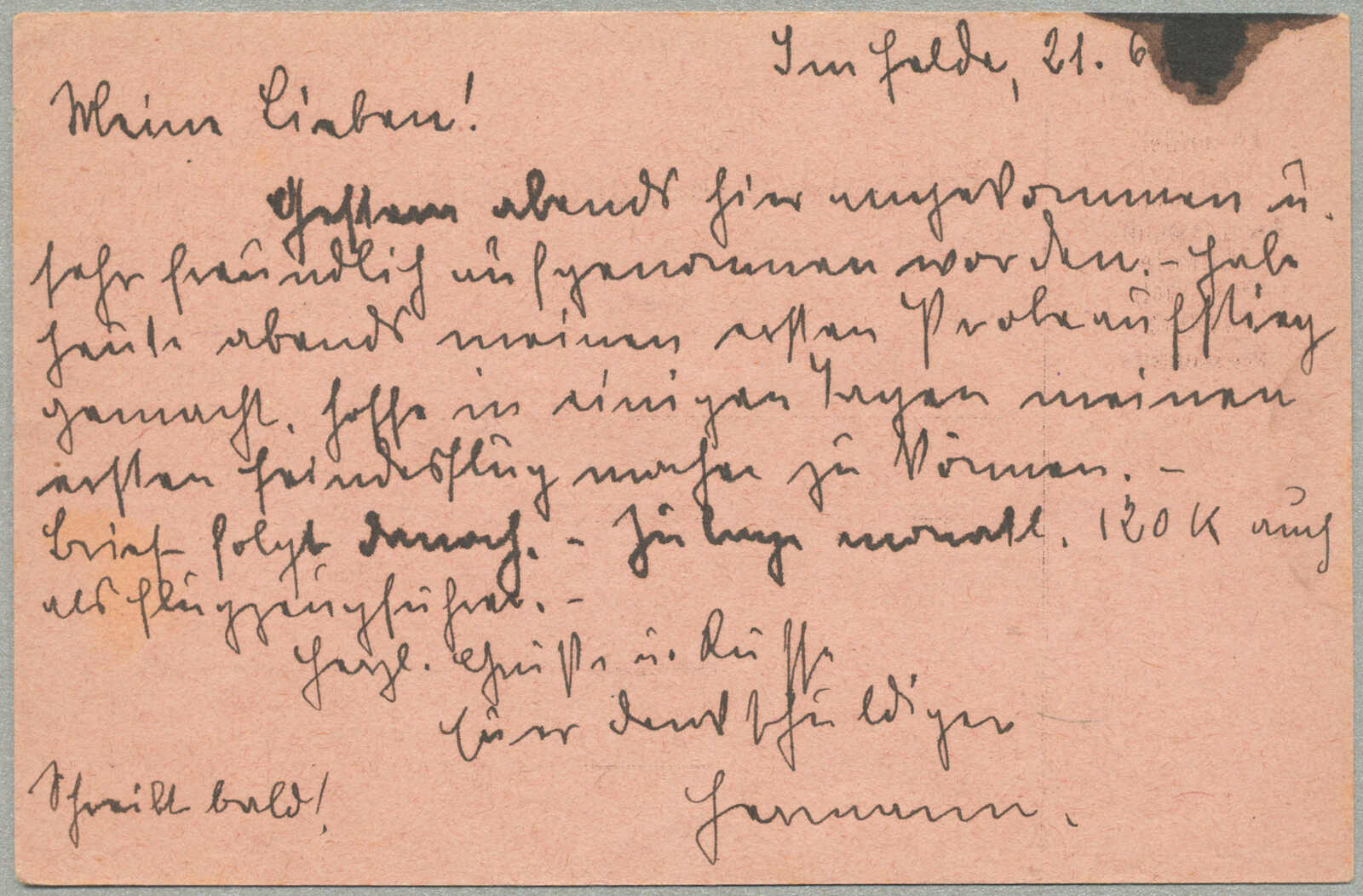 postmark, additional manuscript markings, World War I aviation unit correspondence, fresh and desirable, VF-XF! Estimate 1.200€. (Image) (imagea)