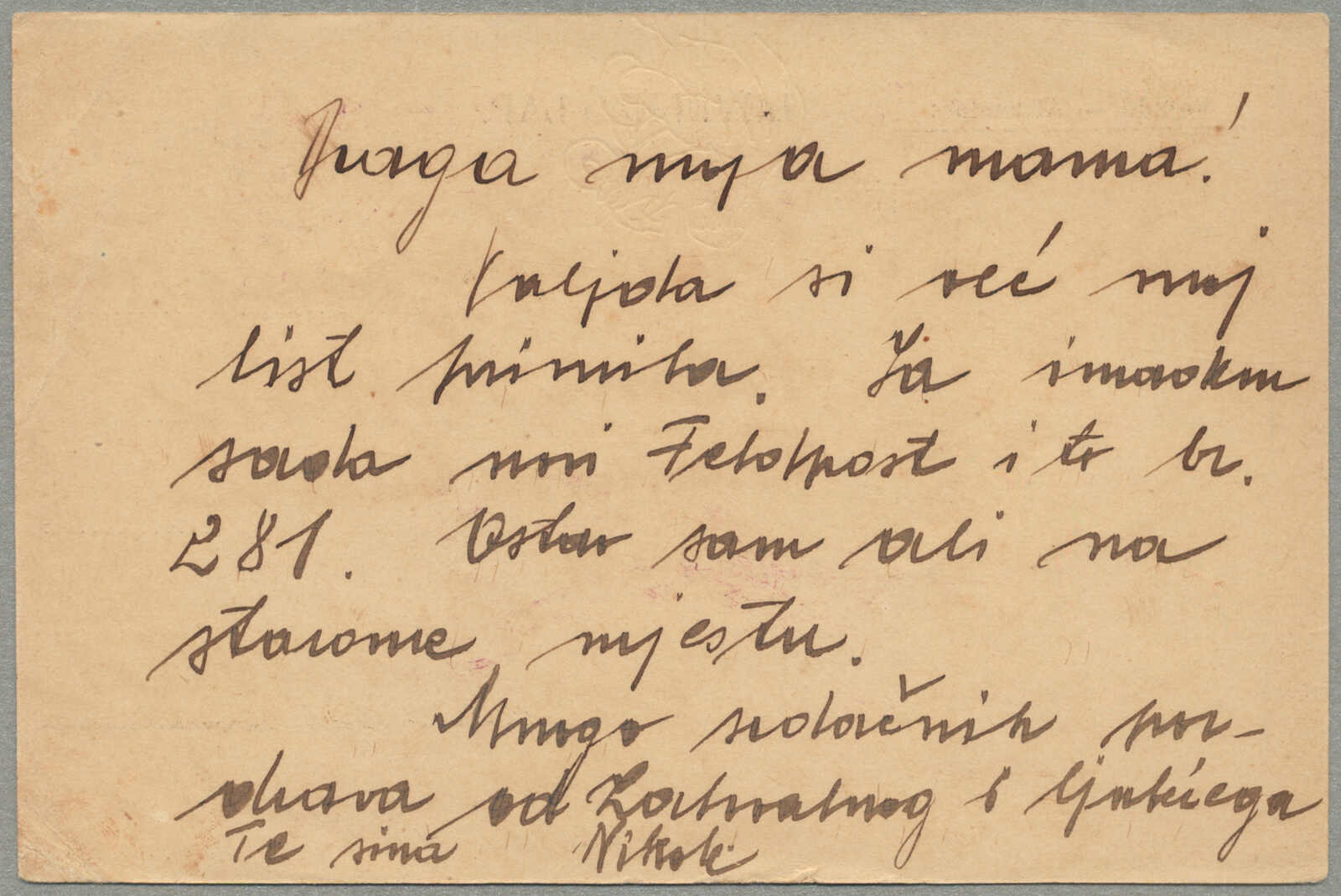franking required due to military postal privilege, written in Croatian, World War I usage, aviation unit, destination in the Hungarian half of the empire, light corner wear, VF-XF! Estimate 600€. (Image) (imagea)