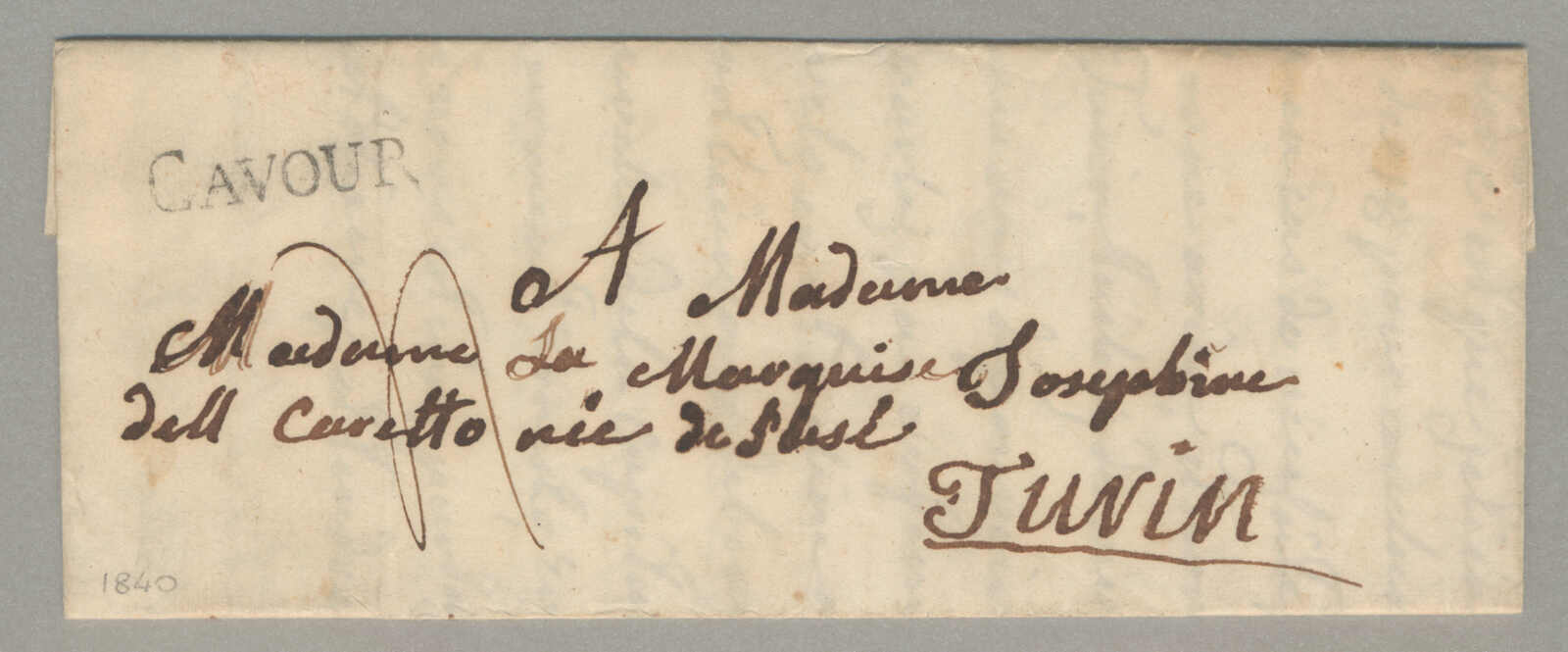 1840, with neatly strike of Cavour, on folded letter, ex Provera, XF! Estimate 100€. (Image) (imagea)