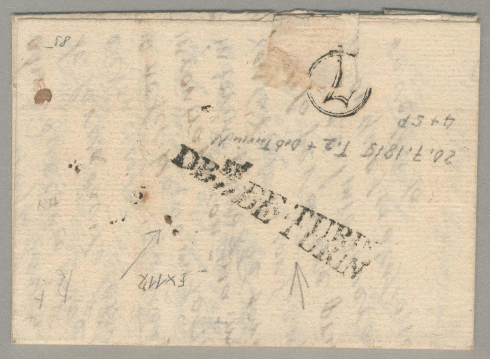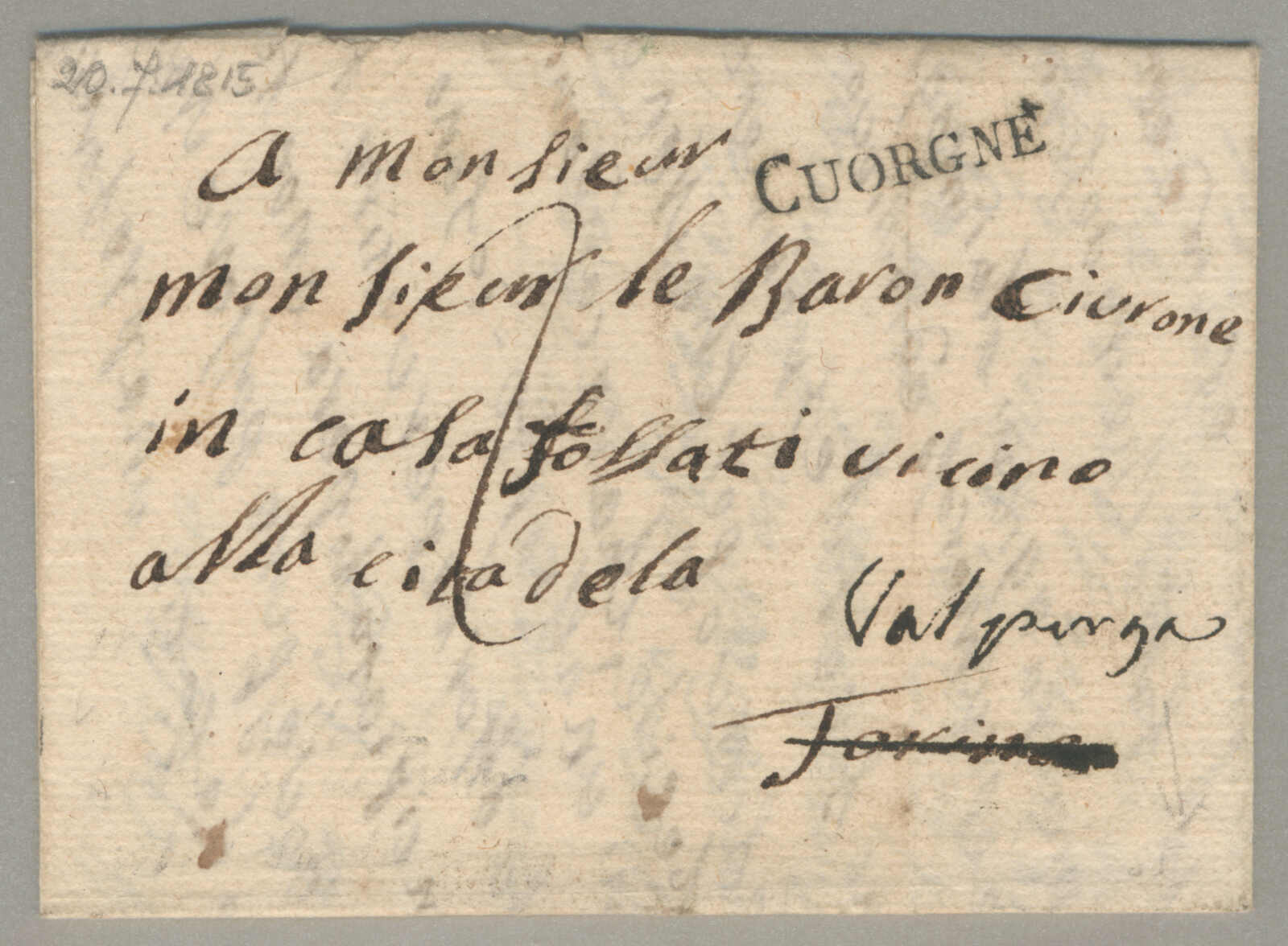 1815, with neatly strike of Cuorgne, on folded letter, ex Provera, XF! Estimate 400€. (Image) (imagea)