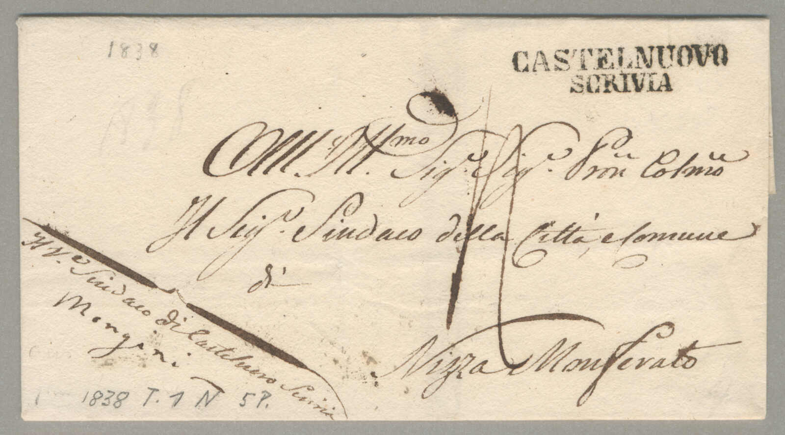 1838, with neatly strike of Castelnuovo Scrivia, on folded letter, ex Provera, XF! Estimate 100€. (Image) (imagea)