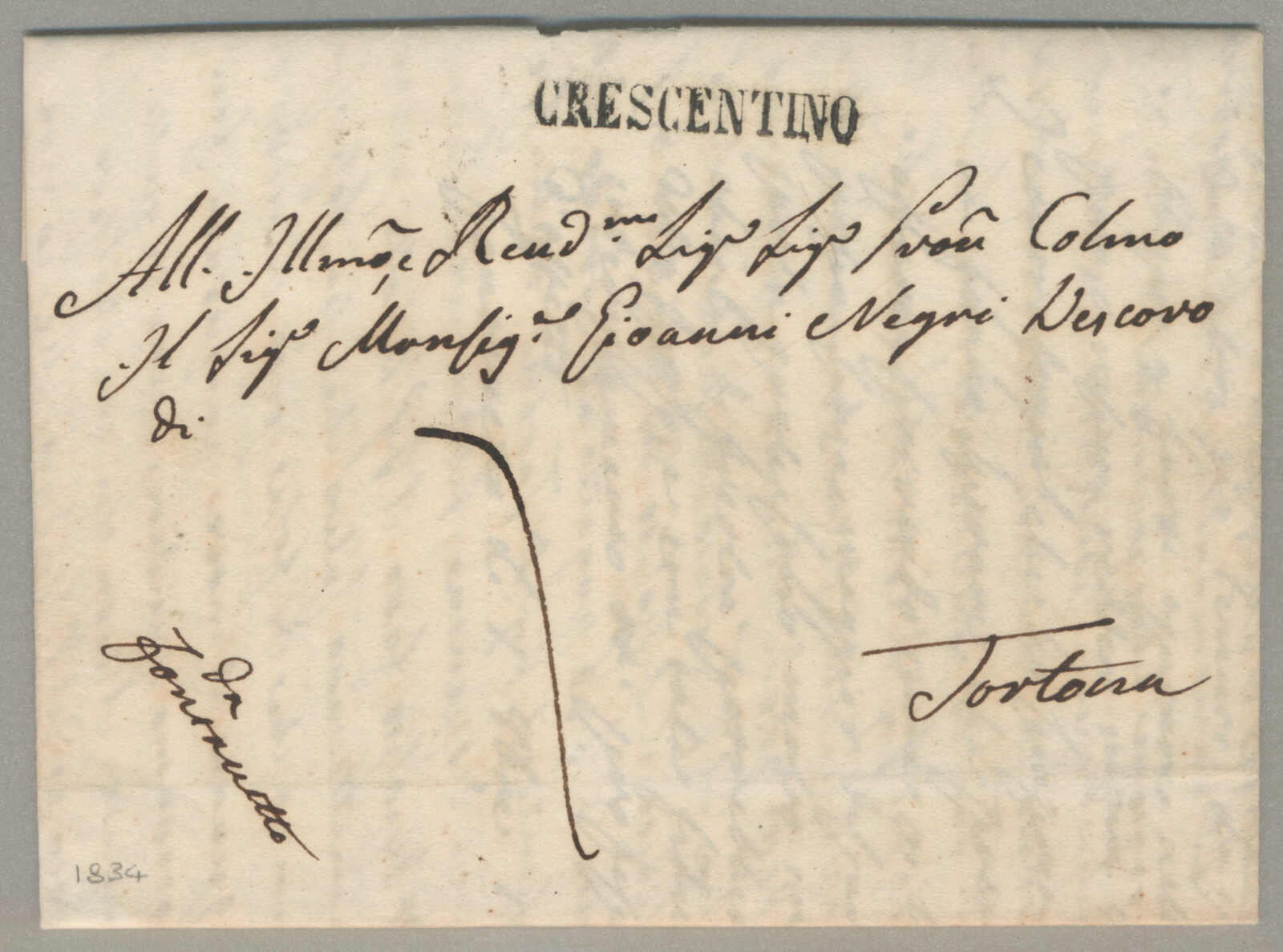 1834, with neatly strike of Crescentino, on folded letter, ex Provera, XF! Estimate 150€. (Image) (imagea)