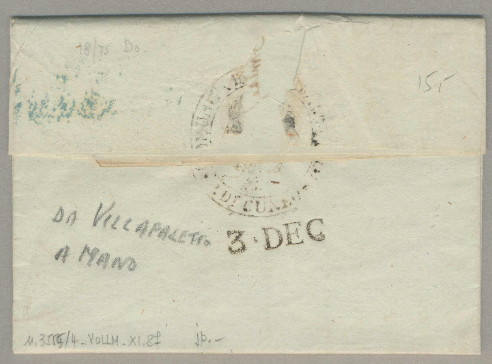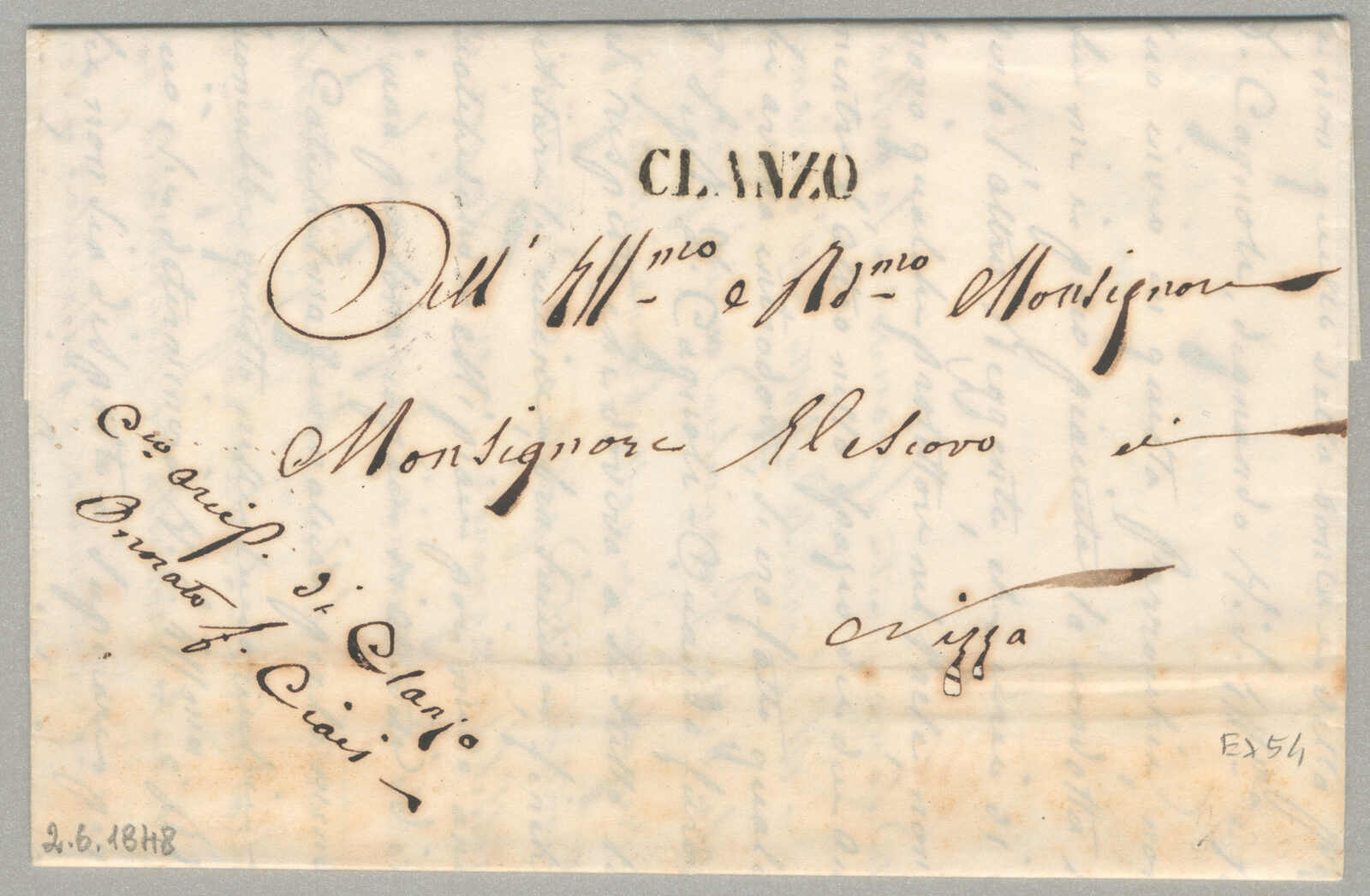 1848, with neatly strike of Clanzo, on folded letter, ex Provera, XF! Estimate 700€. (Image) (imagea)