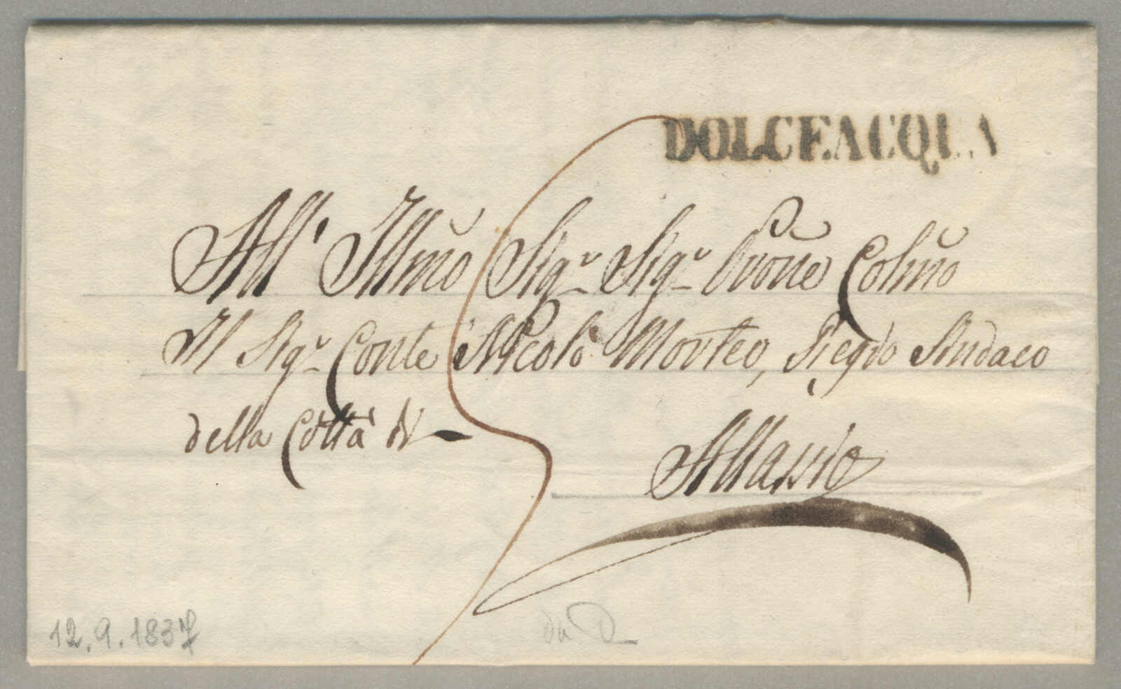 1837, with neatly strike of Dolceacqua, on folded letter, ex Provera, XF! Estimate 200€. (Image) (imagea)
