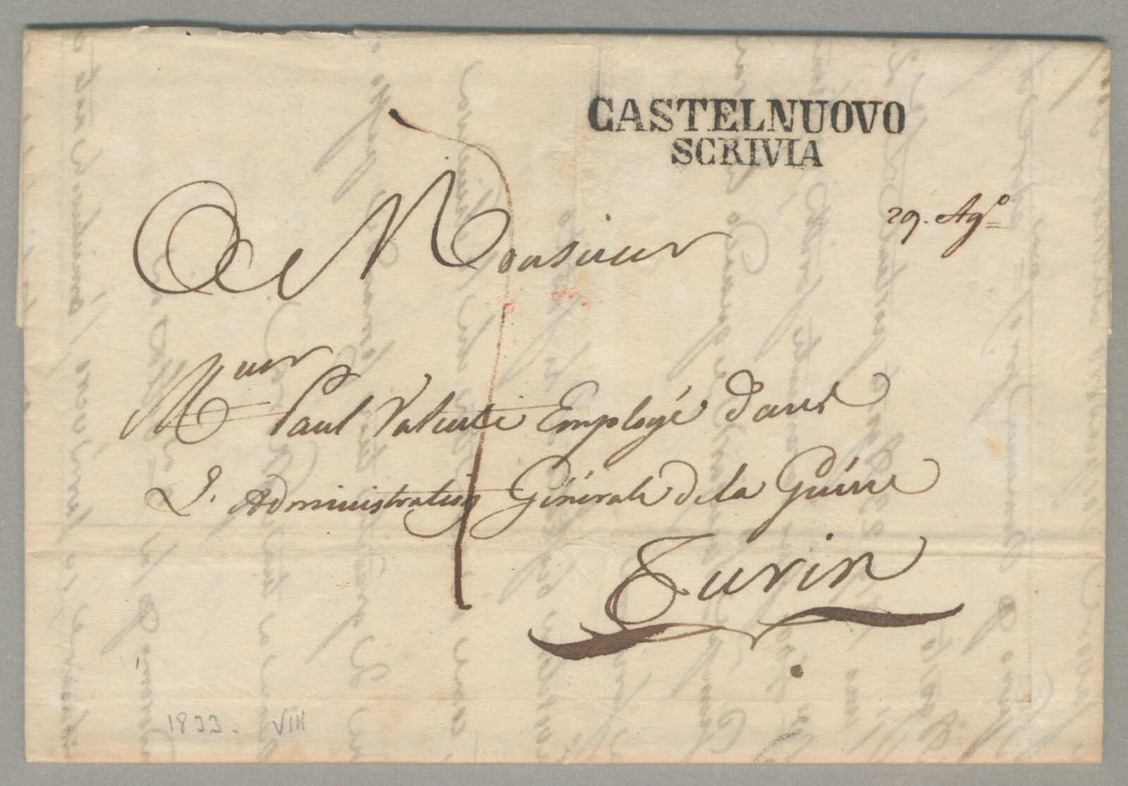 1833, with neatly strike of Castelnuovo Scrivia, on folded letter, ex Provera, XF! Estimate 160€. (Image) (imagea)