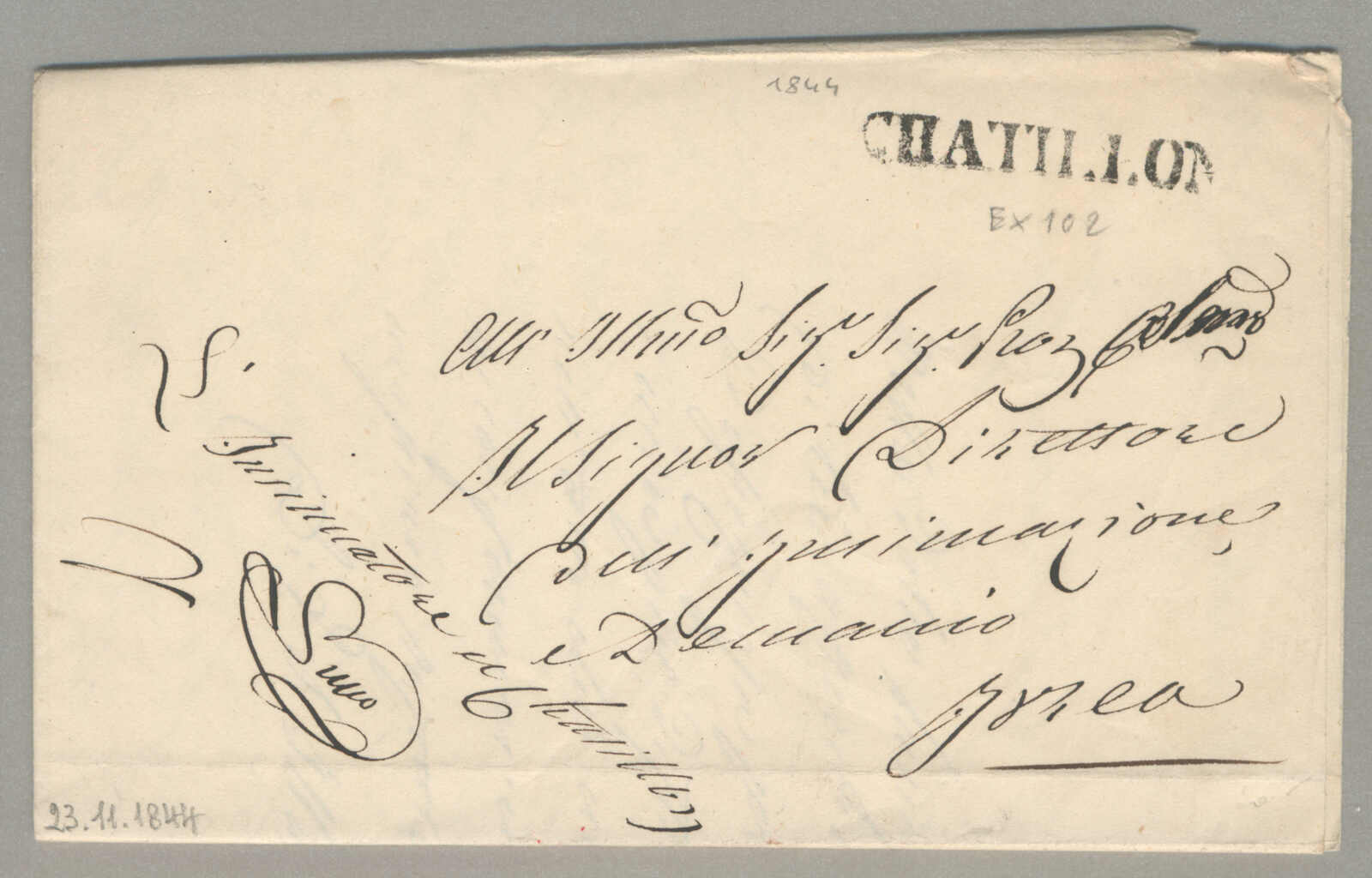 1844, with neatly strike of Chatillon, on folded letter, ex Provera, XF! Estimate 160€. (Image) (imagea)