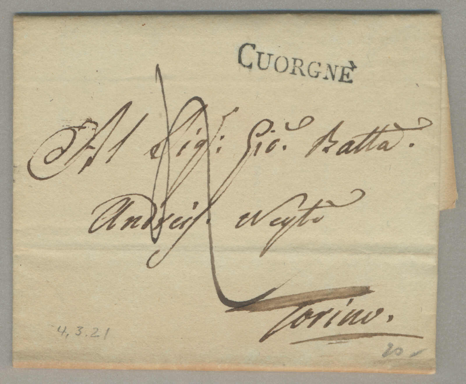 1821, with neatly strike of Cuorgne, on folded letter, ex Provera, XF! Estimate 100€. (Image) (imagea)