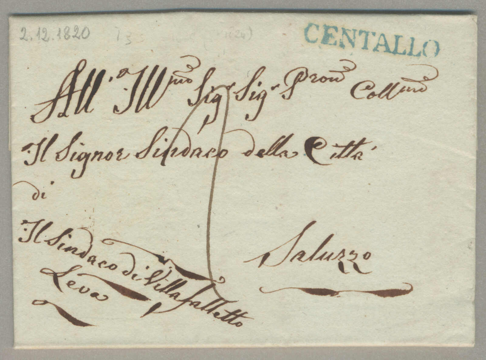 1820, with neatly strike of Centallo, on folded letter, ex Provera, XF! Estimate 90€. (Image) (imagea)