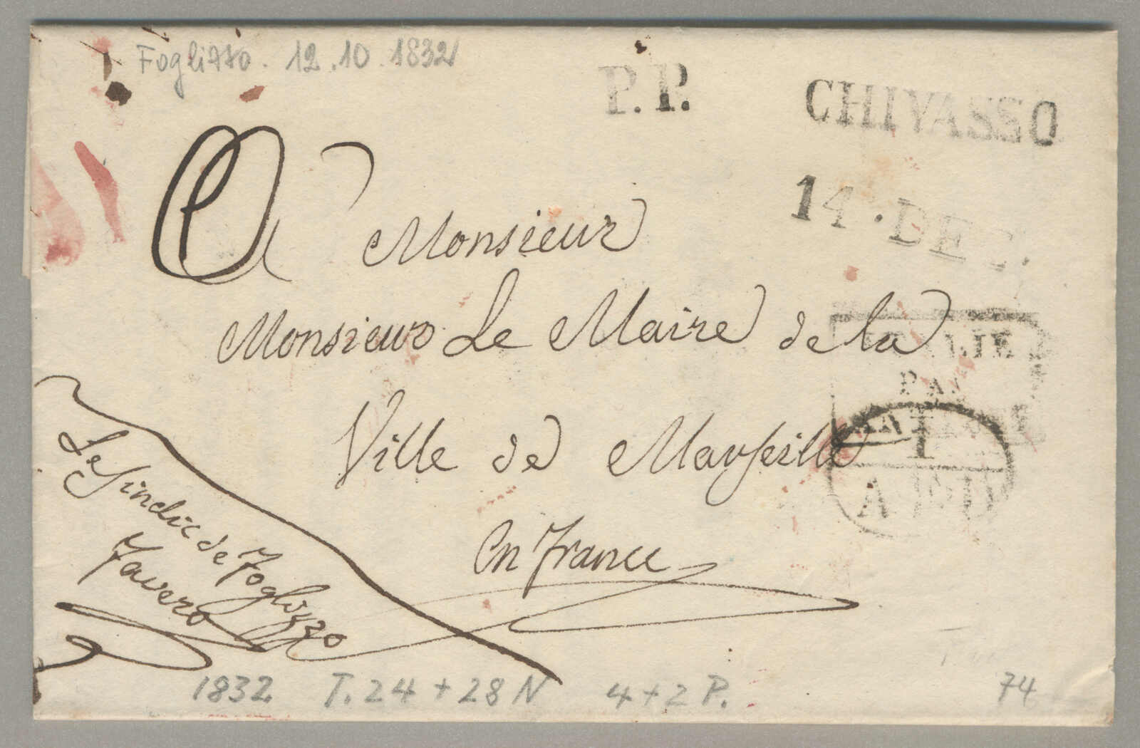 1832, with neatly strike of Chivasso, on folded letter, ex Provera, XF! Estimate 80€. (Image) (imagea)