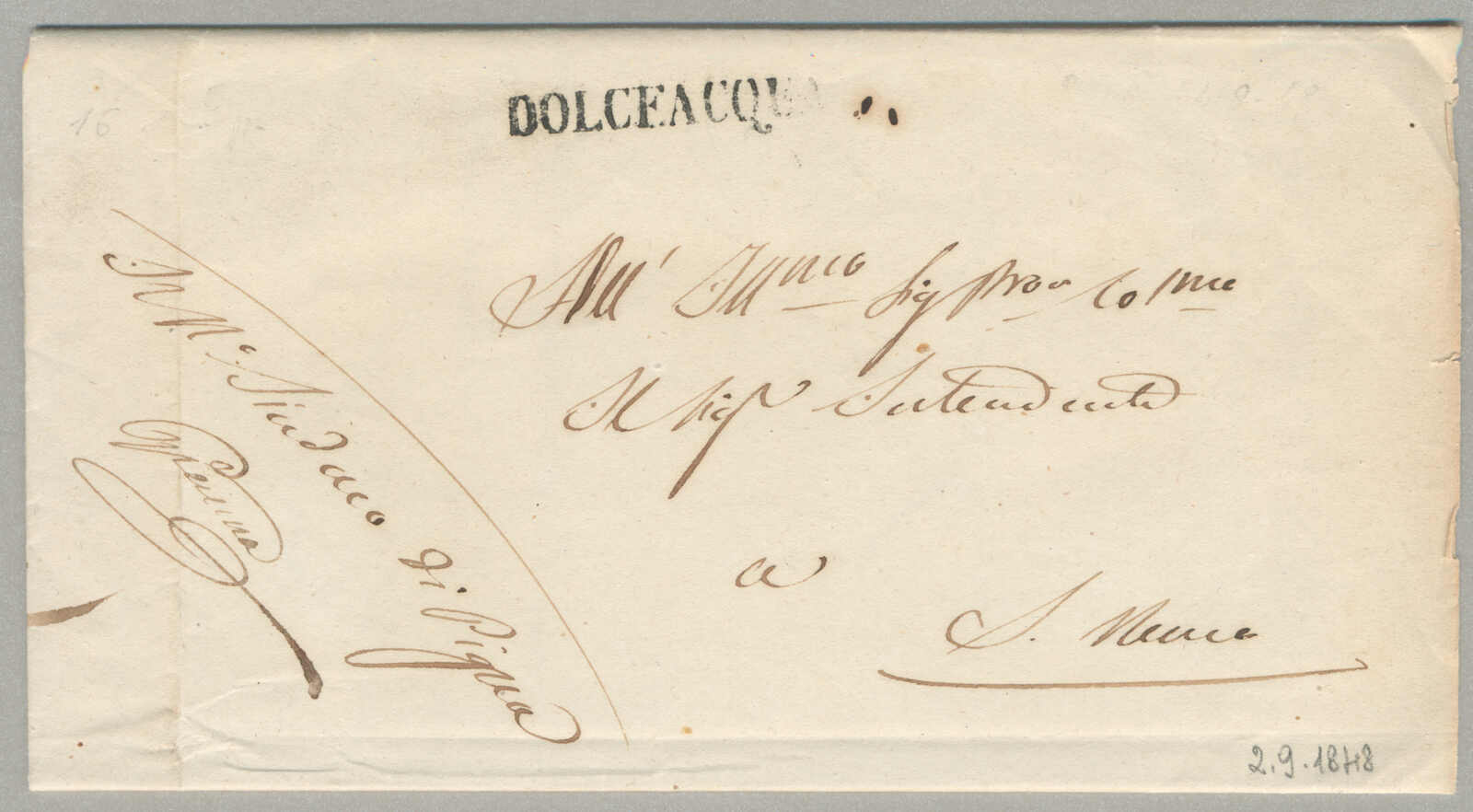 1848, with neatly strike of Dolceacqua, on folded letter, ex Provera, XF! Estimate 300€. (Image) (imagea)