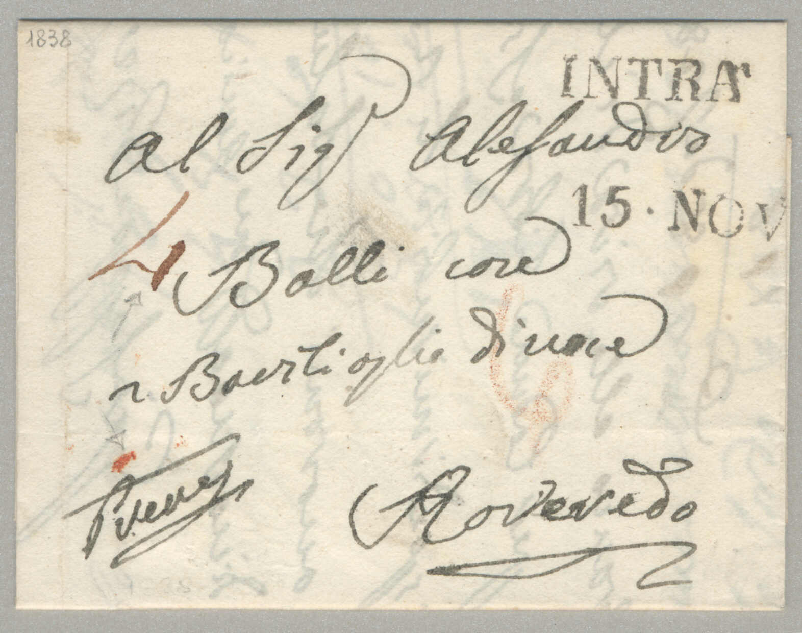 1838, with neatly strike of Intra, on folded letter, ex Provera, XF! Estimate 100€. (Image) (imagea)