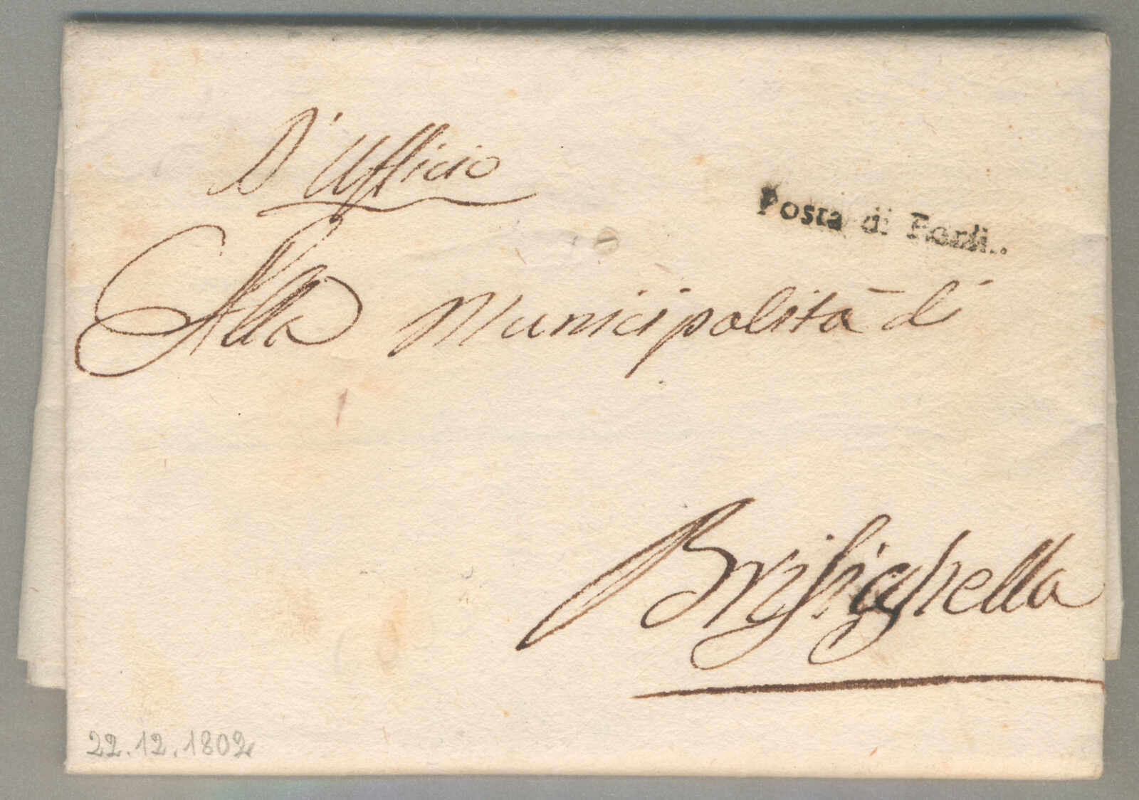 1802, with neatly strike of Forti, on folded letter, ex Provera, XF! Estimate 160€. (Image) (imagea)