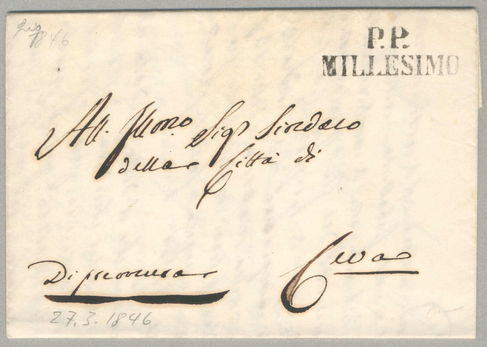 1846, with neatly strike of Millesimo, on folded letter, ex Provera, XF! Estimate 120€. (Image) (imagea)