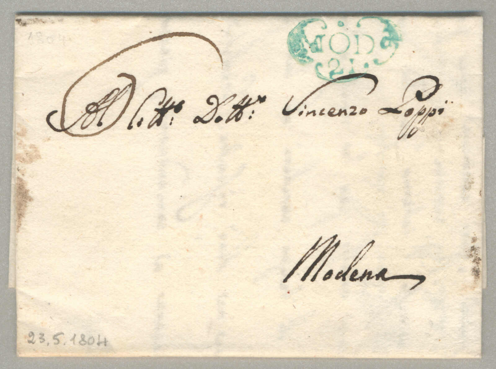 1804, with neatly strike of Jod, on folded letter, ex Provera, XF! Estimate 100€. (Image) (imagea)