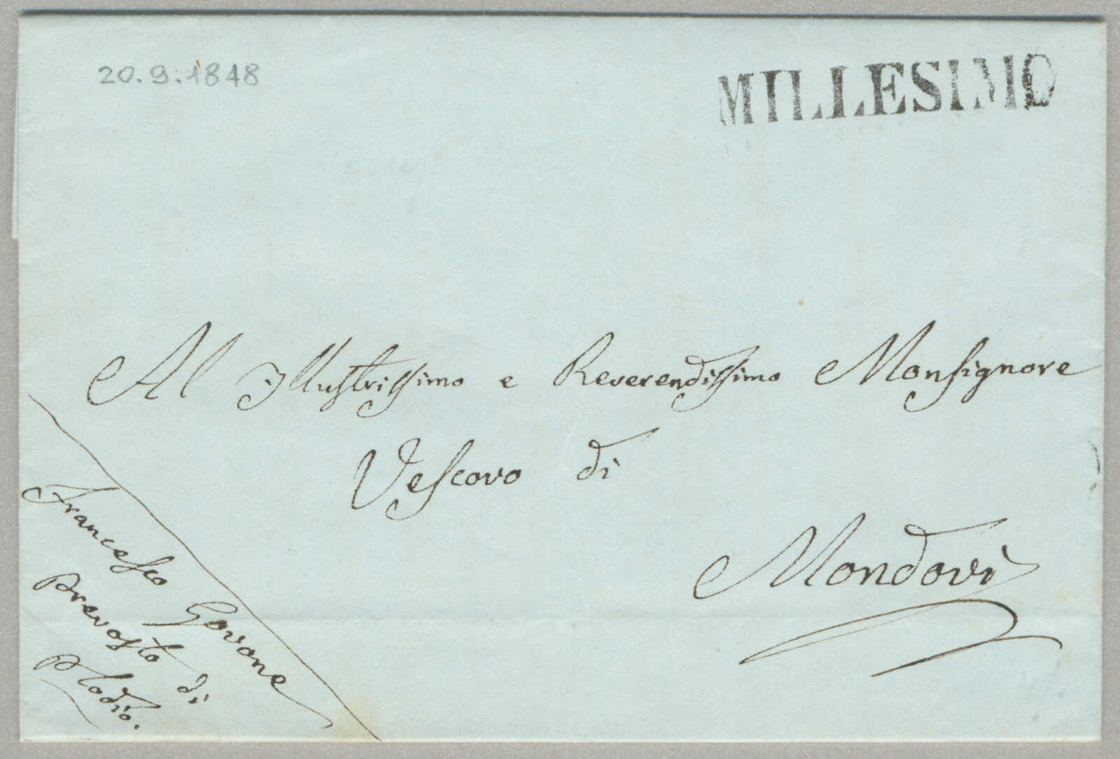 1848, with neatly strike of Millesimo, on folded letter, ex Provera, XF! Estimate 100€. (Image) (imagea)