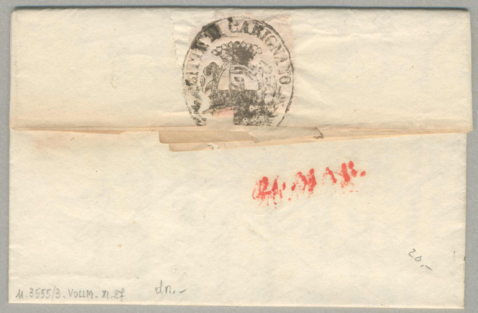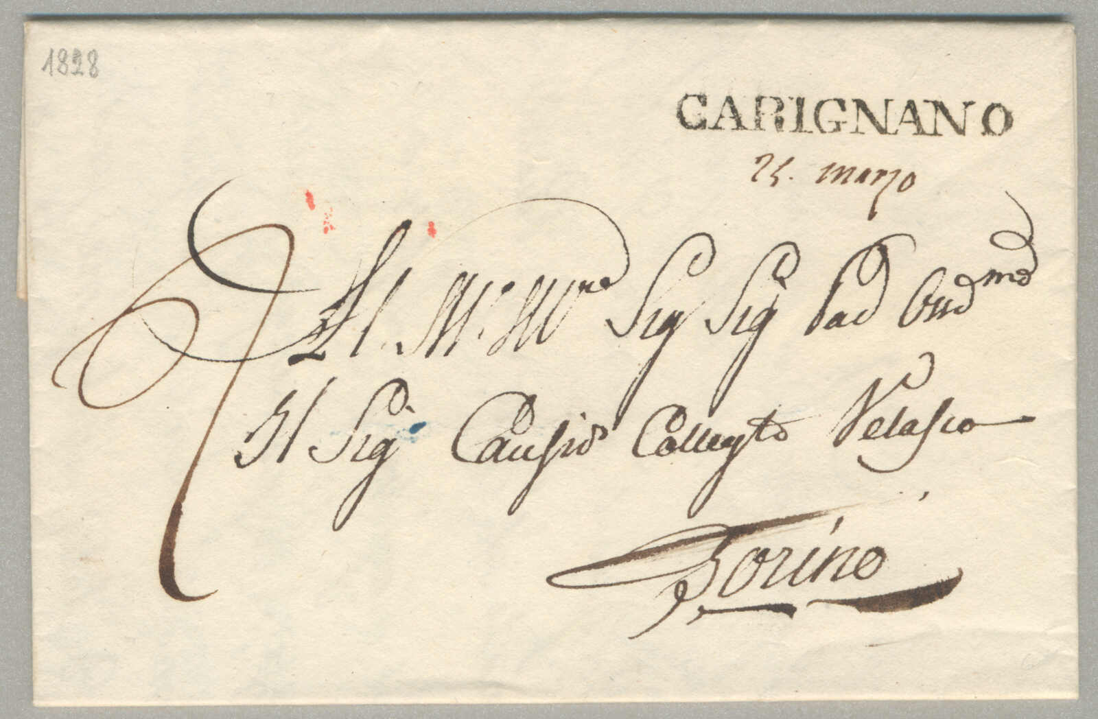 1828, with neatly strike of Carignano, on folded letter, ex Provera, XF! Estimate 100€. (Image) (imagea)