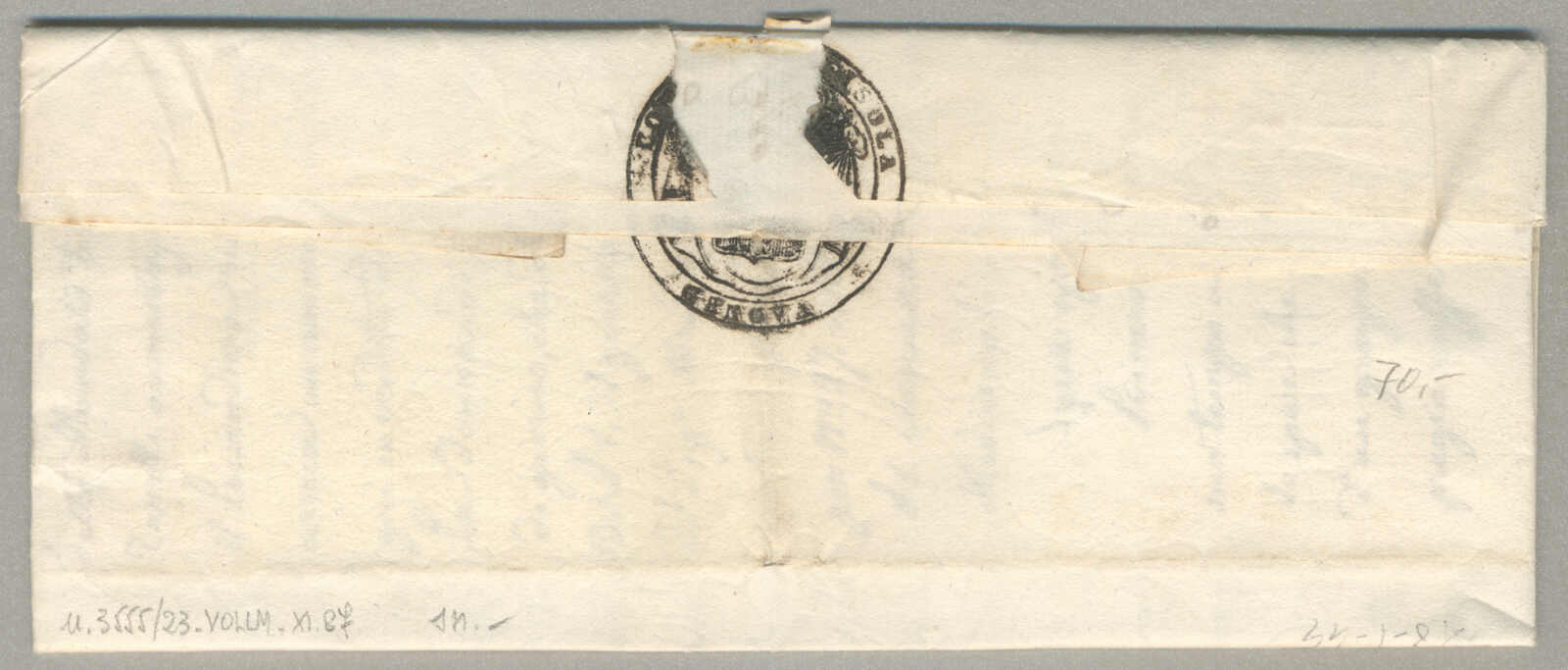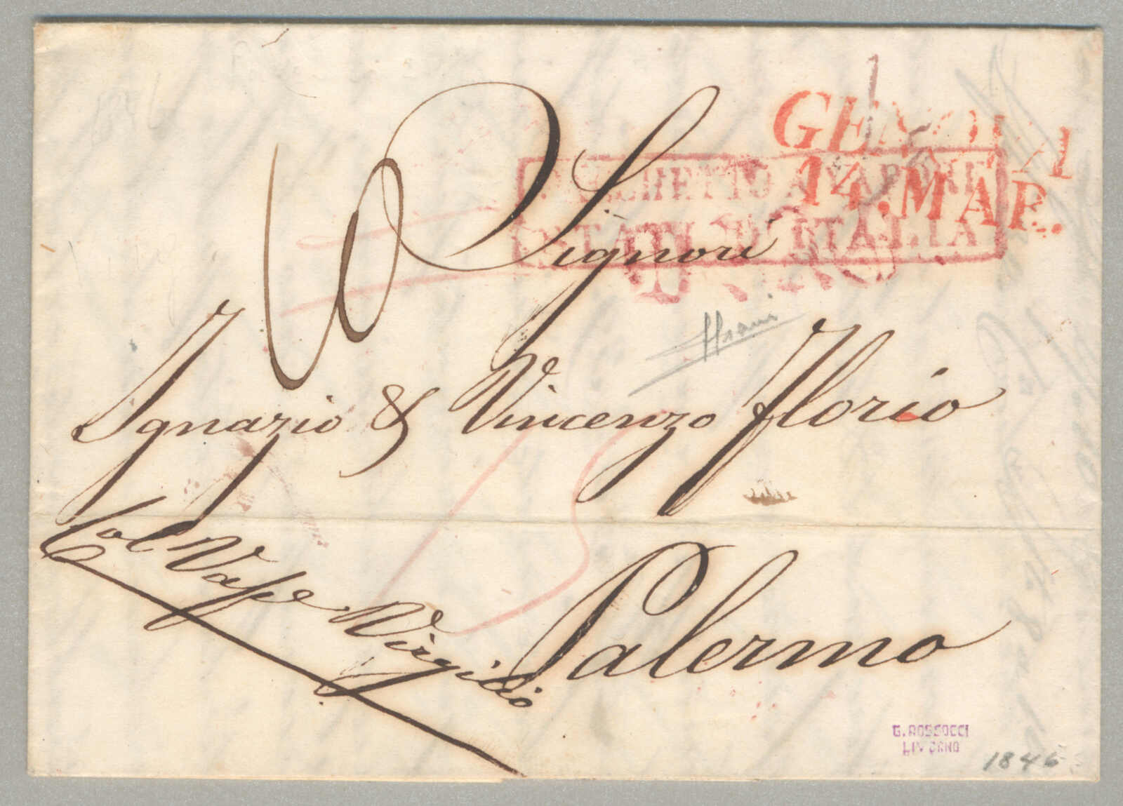 1846, with neatly strike of Genova, on folded letter, ex Provera, XF! Estimate 100€. (Image) (imagea)