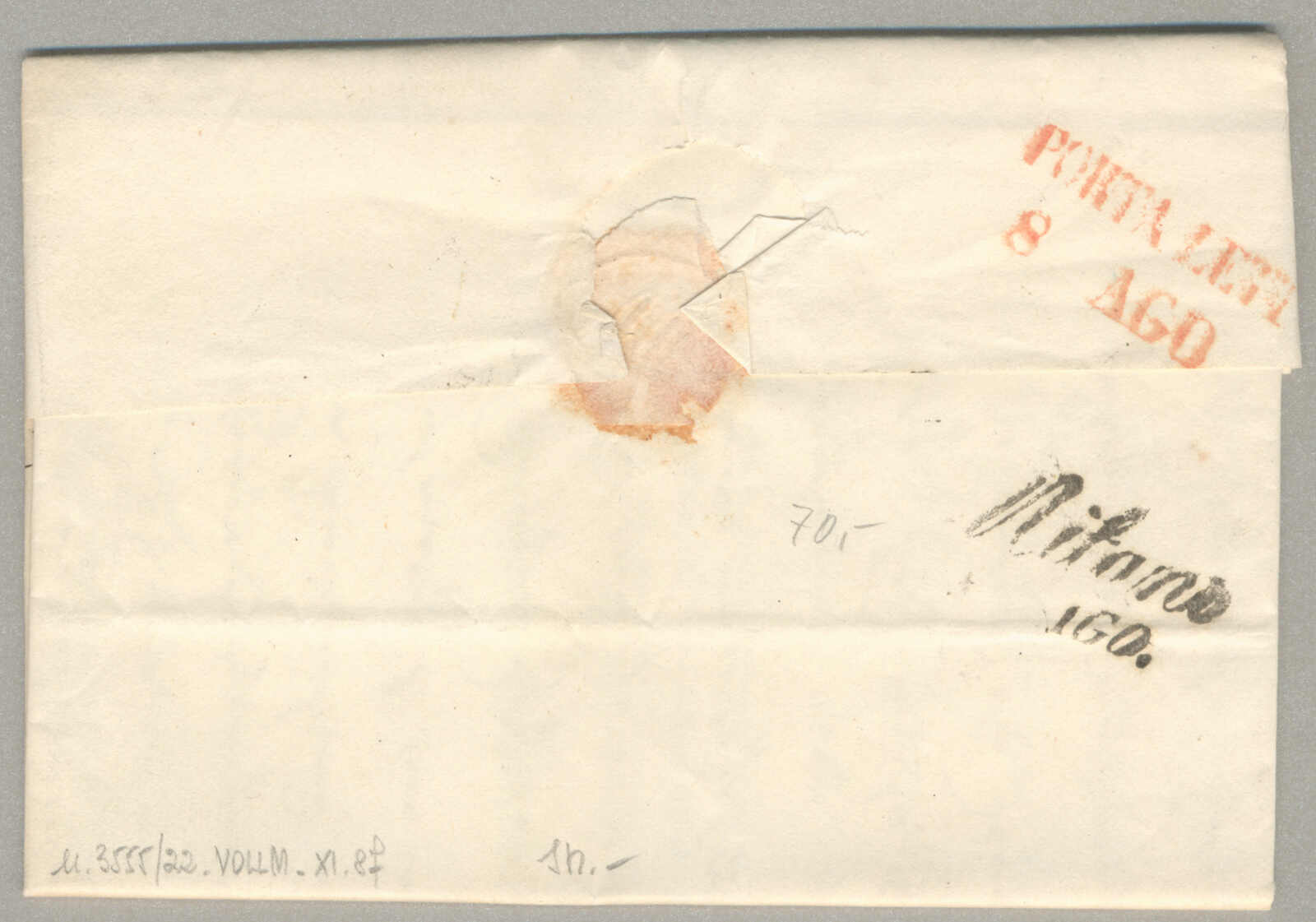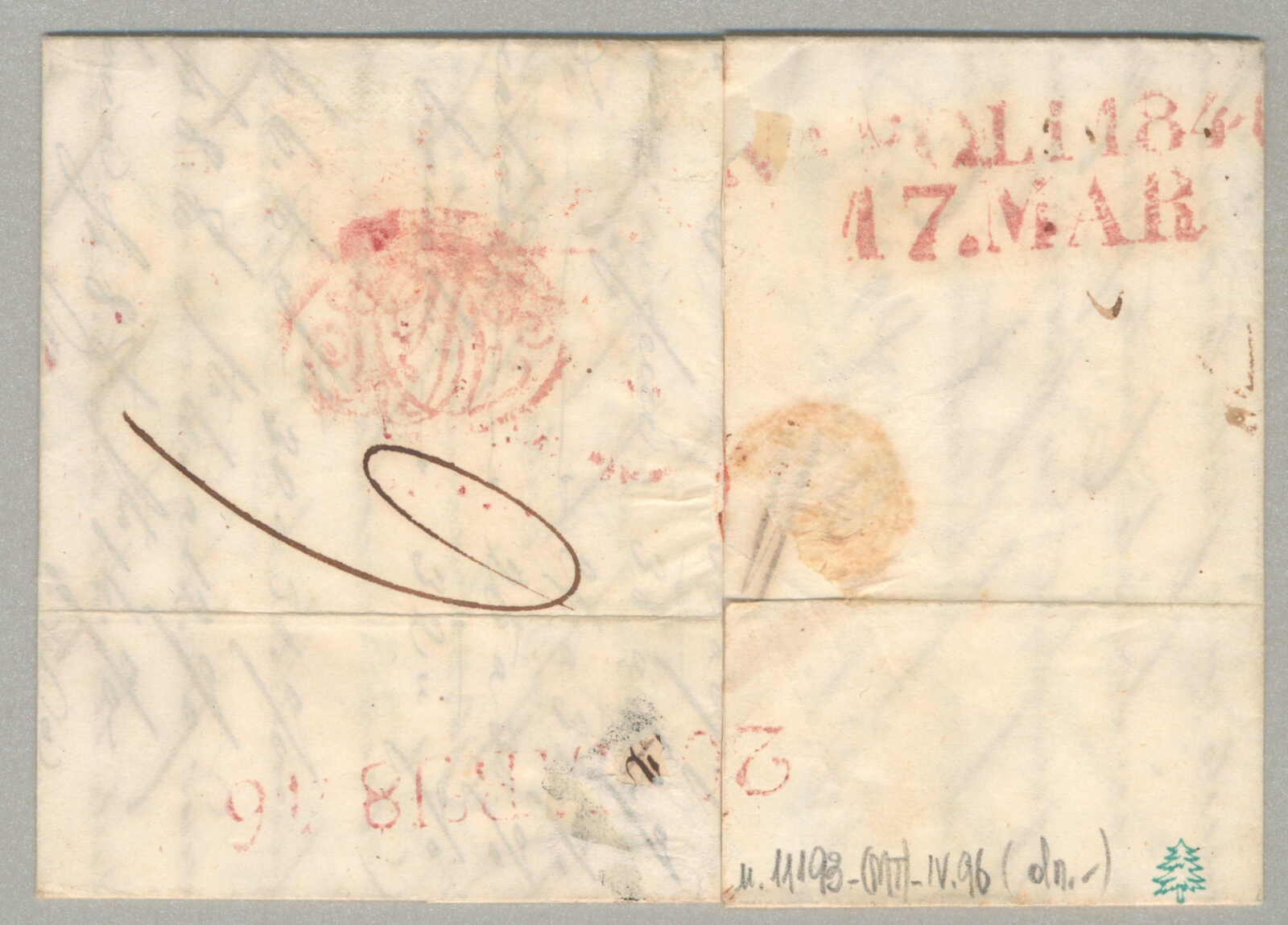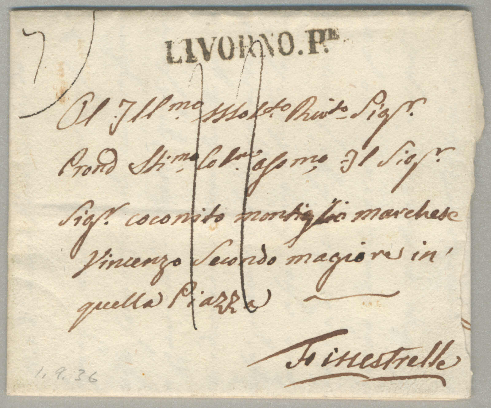 1836, with neatly strike of Livorno P., on folded letter, ex Provera, XF! Estimate 100€. (Image) (imagea)