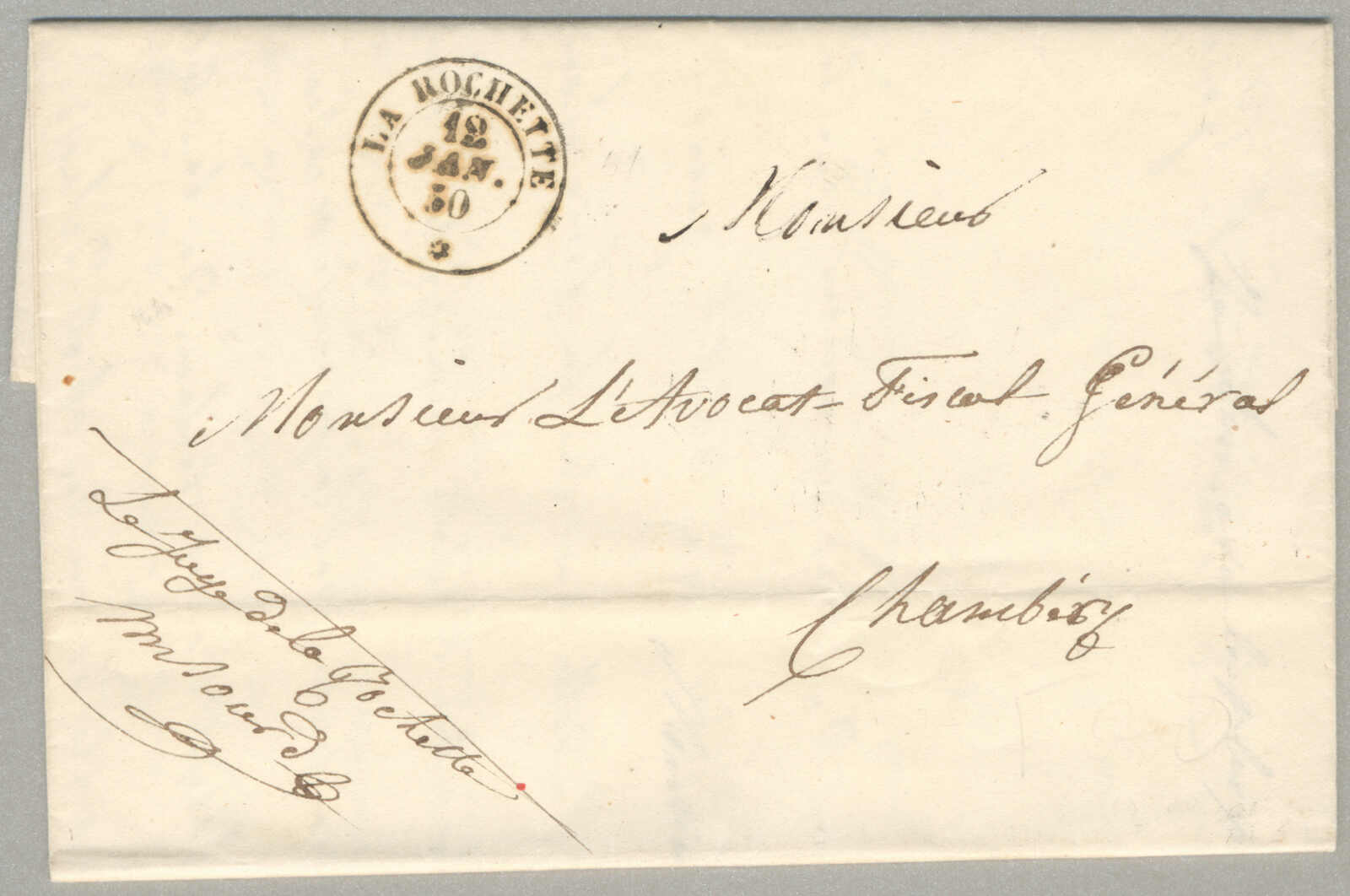 1850, with neatly strike of La Rochette, on folded letter, ex Provera, XF! Estimate 900€. (Image) (imagea)