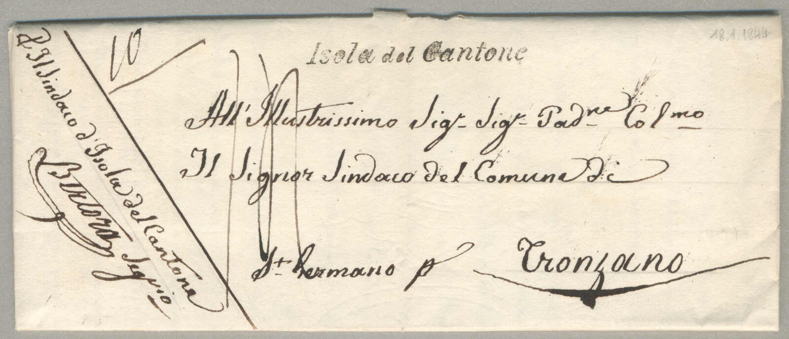 1843, with neatly strike of Isola del Cantone, on folded letter, ex Provera, XF! Estimate 400€. (Image) (imagea)