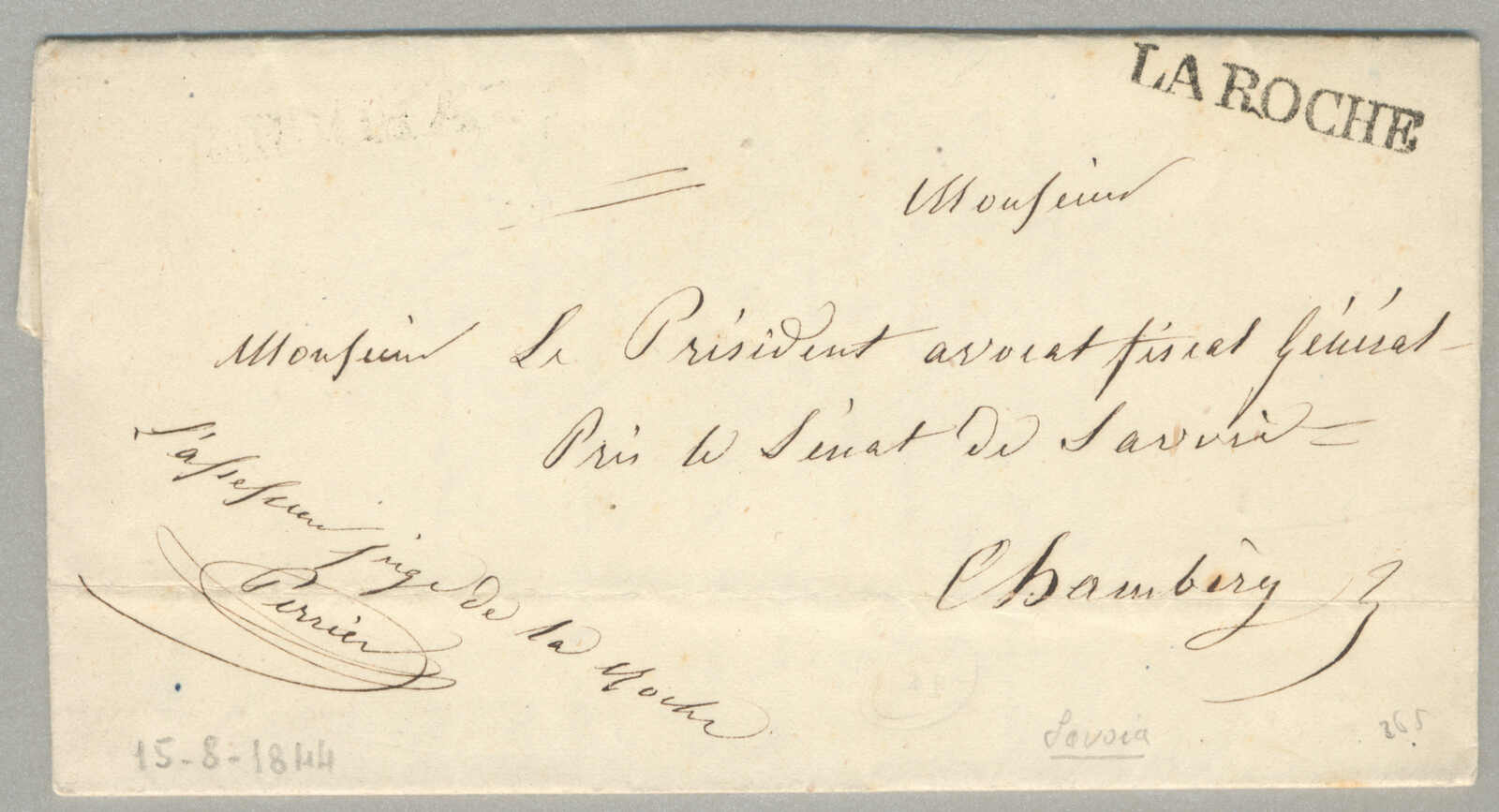 1844, with neatly strike of La Roche, on folded letter, ex Provera, XF! Estimate 100€. (Image) (imagea)