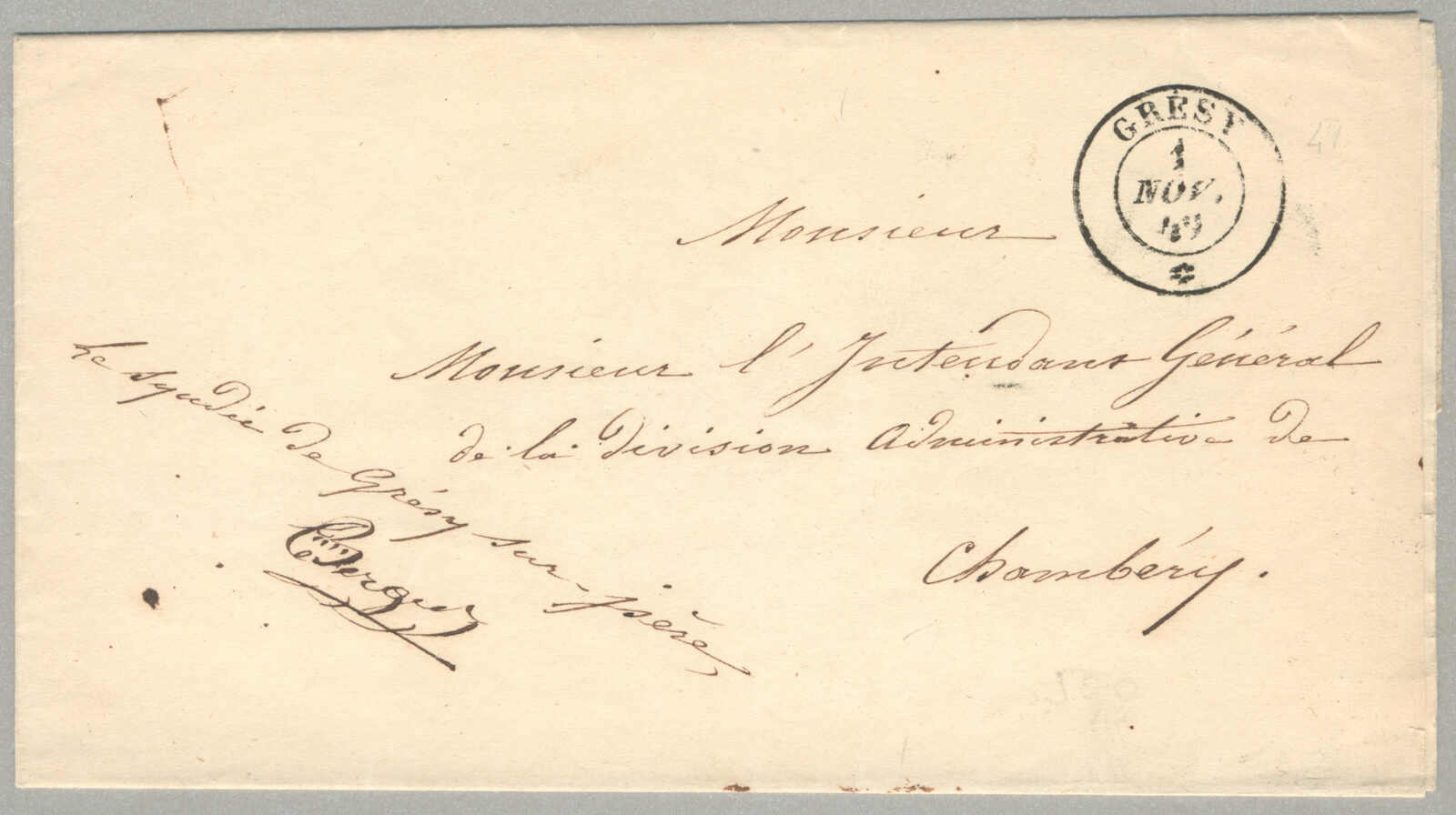 1849, with neatly strike of Gresy, on folded letter, ex Provera, XF! Estimate 700€. (Image) (imagea)