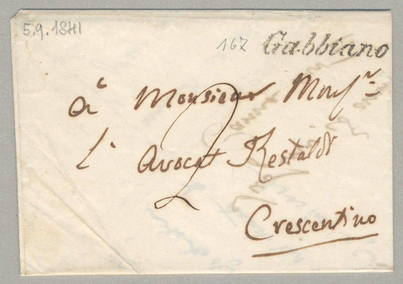1841, with neatly strike of Gabbiano, on folded letter, ex Provera, XF! Estimate 900€. (Image) (imagea)
