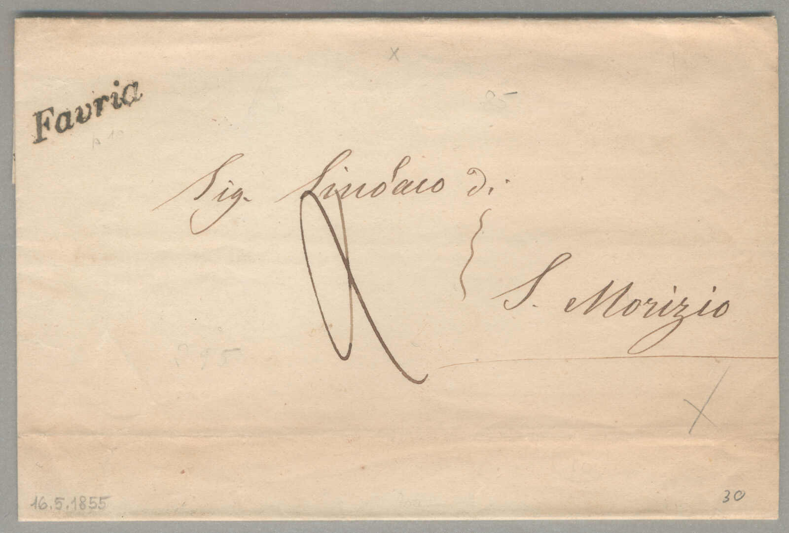 1855, with neatly strike of Favria, on folded letter, ex Provera, XF! Estimate 800€. (Image) (imagea)