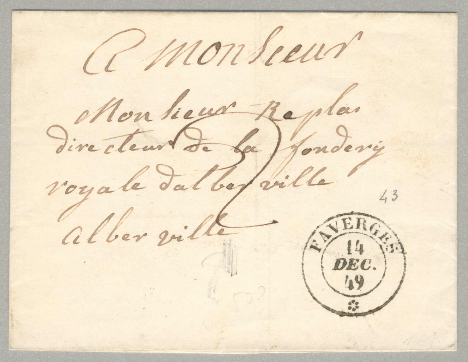 1849, with neatly strike of Faverges, on folded letter, ex Provera, XF! Estimate 800€. (Image) (imagea)