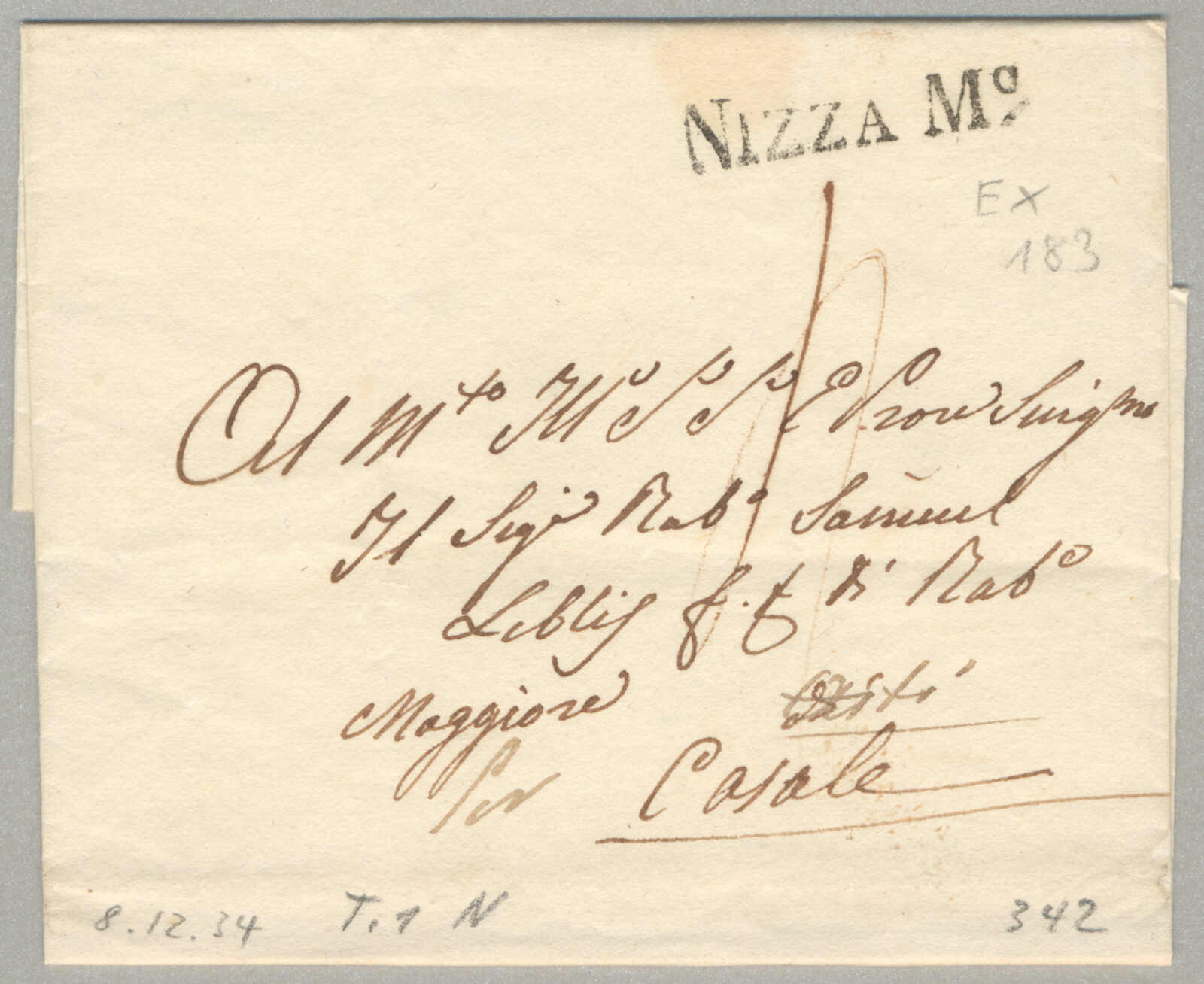 1834, with neatly strike of Nizza, on folded letter, ex Provera, XF! Estimate 120€. (Image) (imagea)