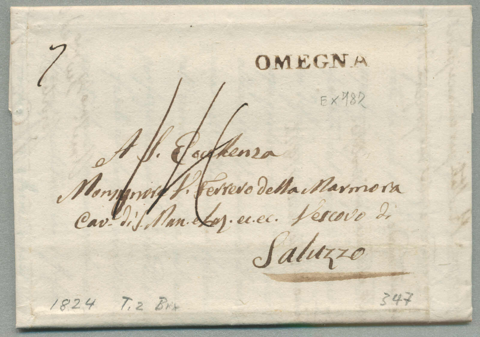 1824, with neatly strike of Omegna, on folded letter, ex Provera, XF! Estimate 100€. (Image) (imagea)